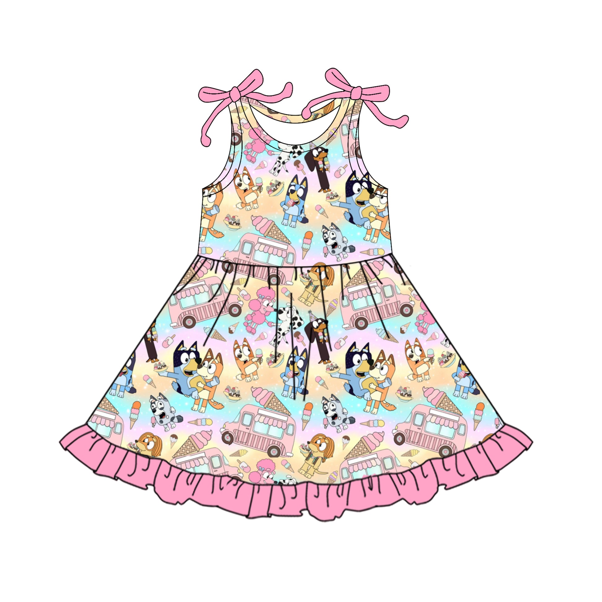 preorder GSD2485 Cartoon Bluey Pink Ruffle Sleeveless Dress Girls Boutique Outfits 202504