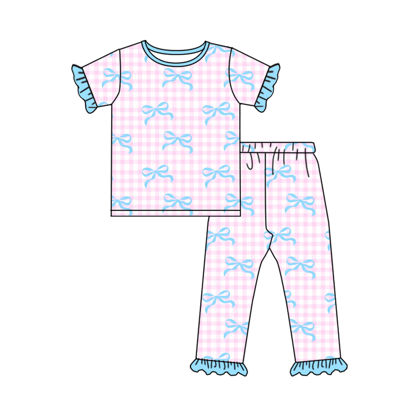 Preorder GSPO1736 Bow pattern Blue Lace pink plaid short-sleeved trousers pajamas set high quality