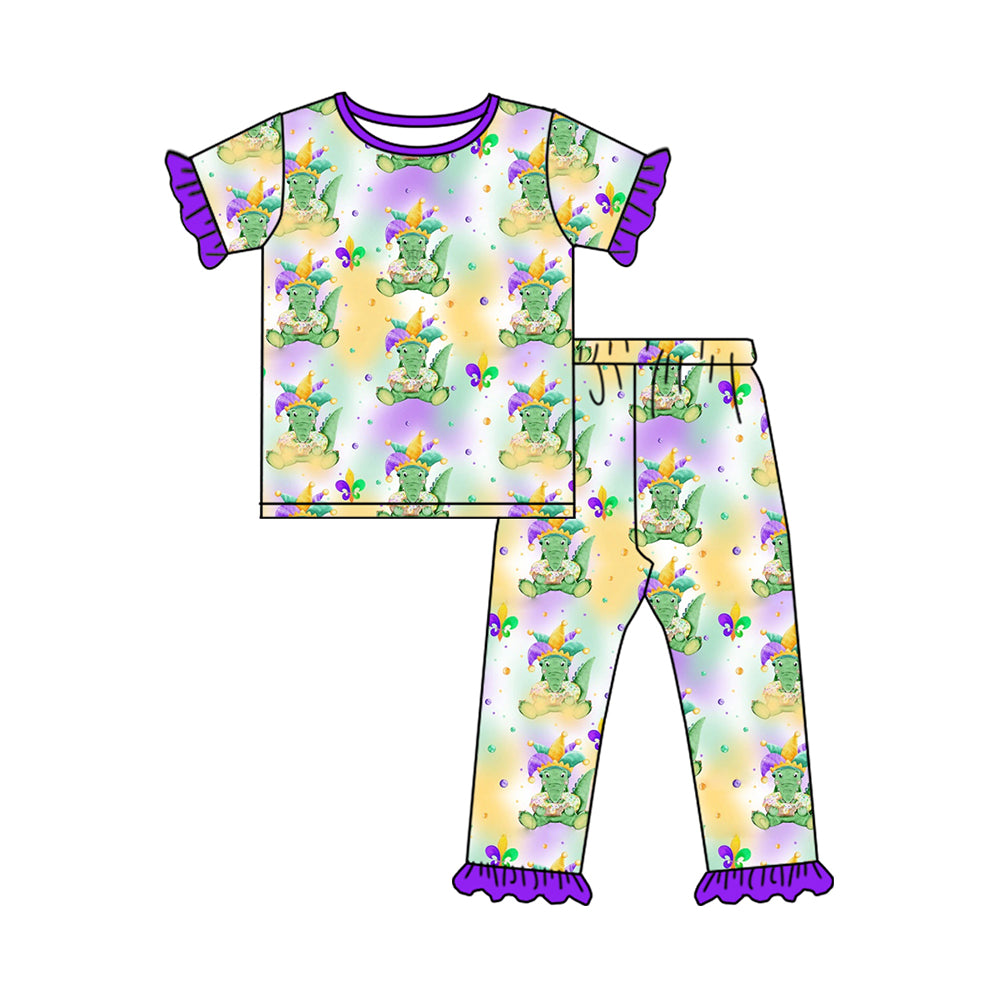 Preorder GSPO1766 Mardi Gras Crocodile purple lace short-sleeved pant pajama set