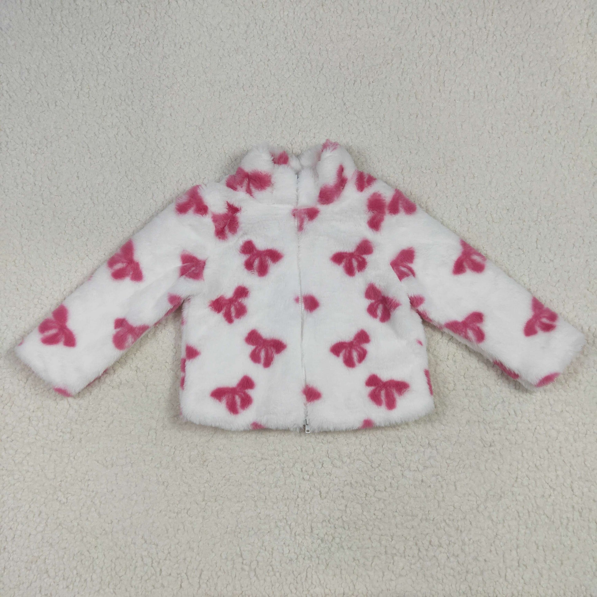 GT1048 Girls Rose Red Bows White Plush Jacket Long Sleeve Top 202506 RTS Free Shipping Over $100