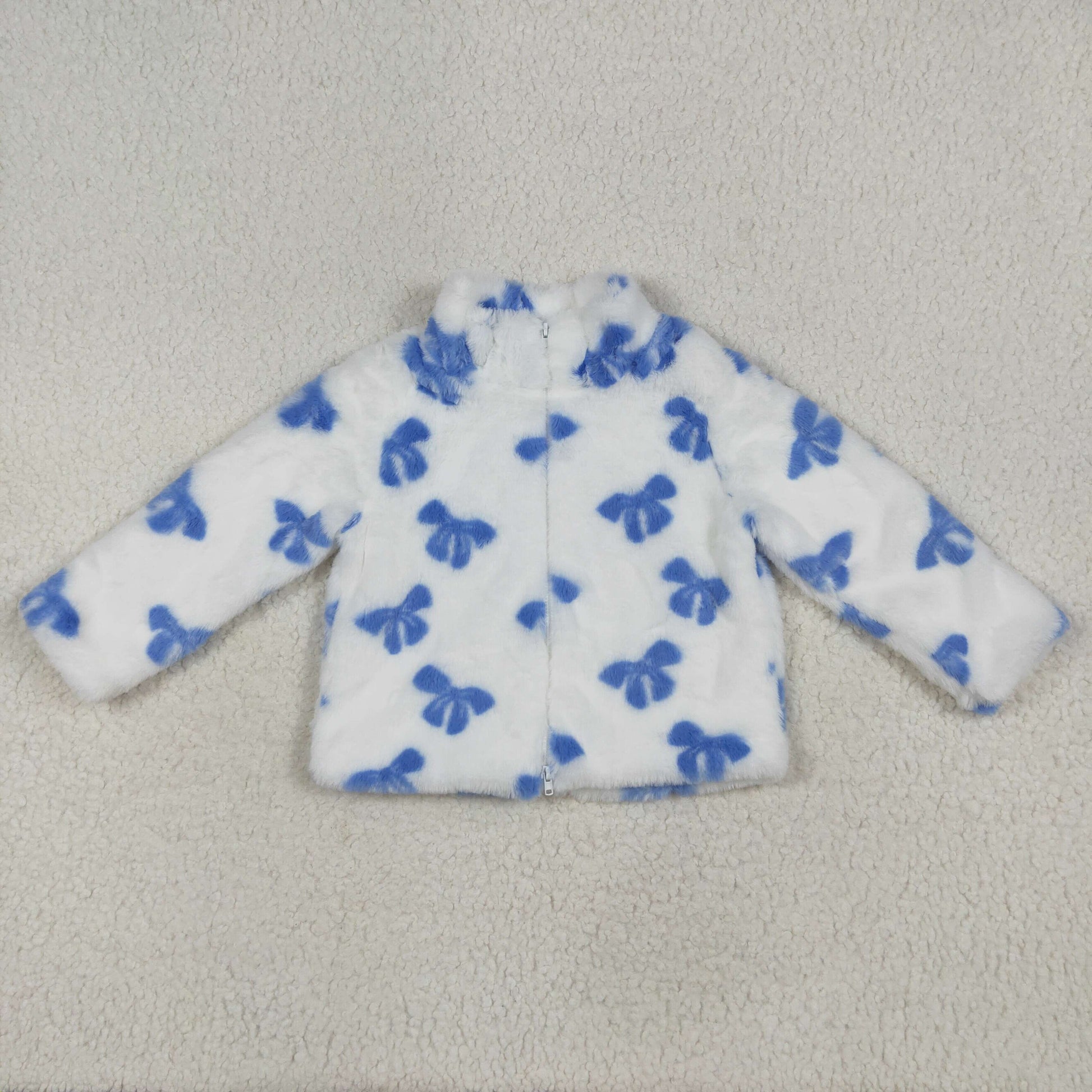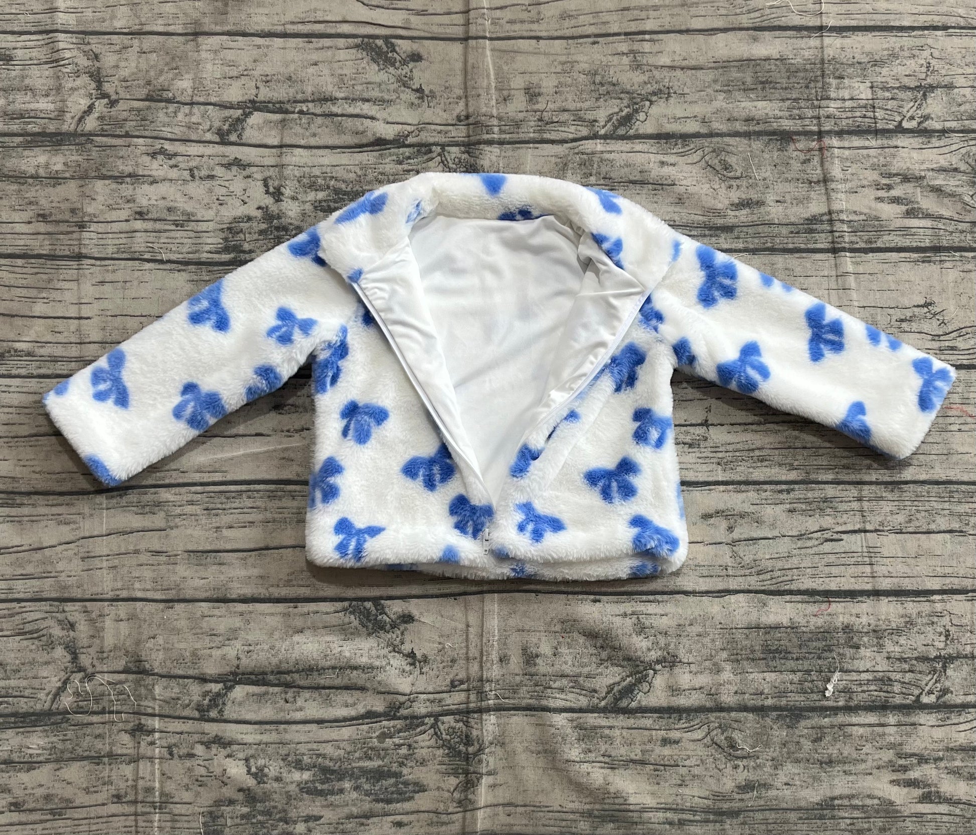 GT1049 Girls White Blue Bows Plush Jacket Long Sleeve Top 202506 RTS Free Shipping Over $100