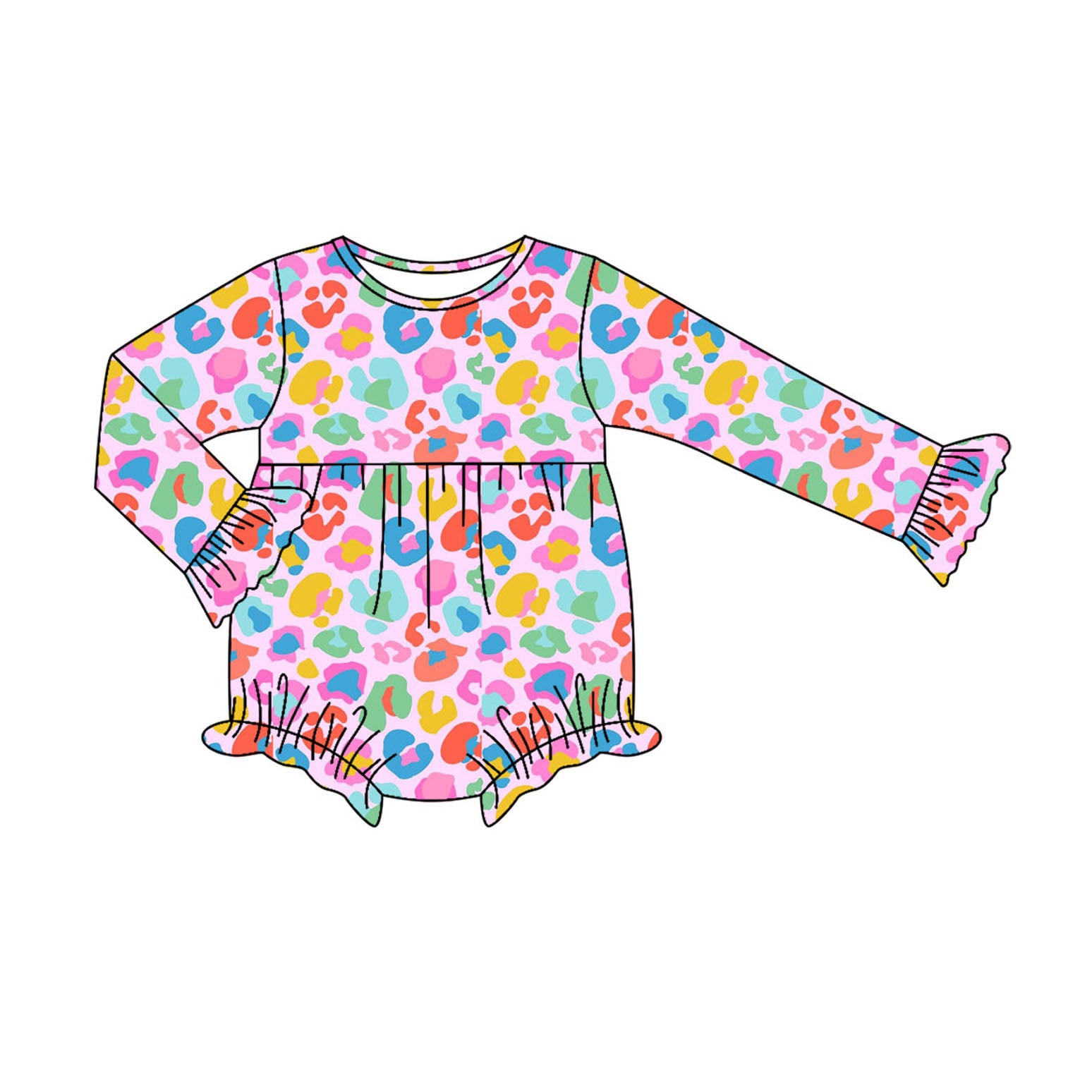 Preorder LR2430 Colored Leopard Ruffle Long Sleeve Girls Bubble Romper 202507