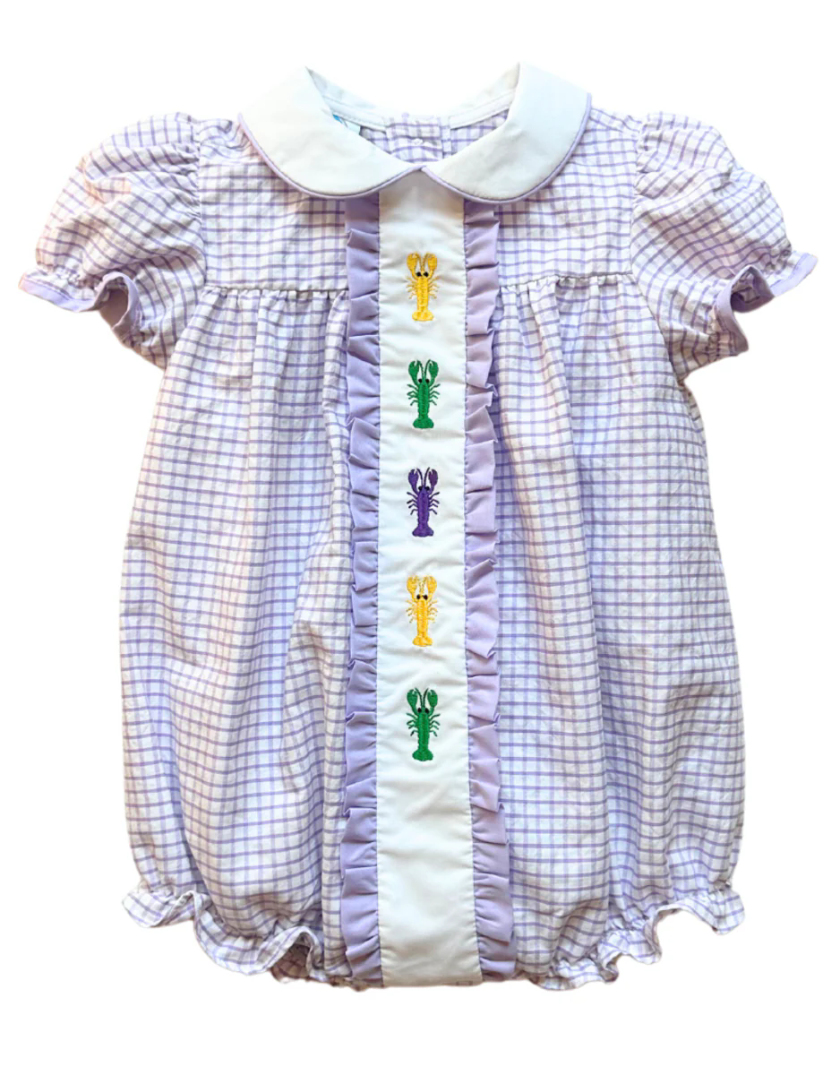 Preorder SR2077 Mardi Gras crayfish purple plaid doll collar short-sleeved onesie