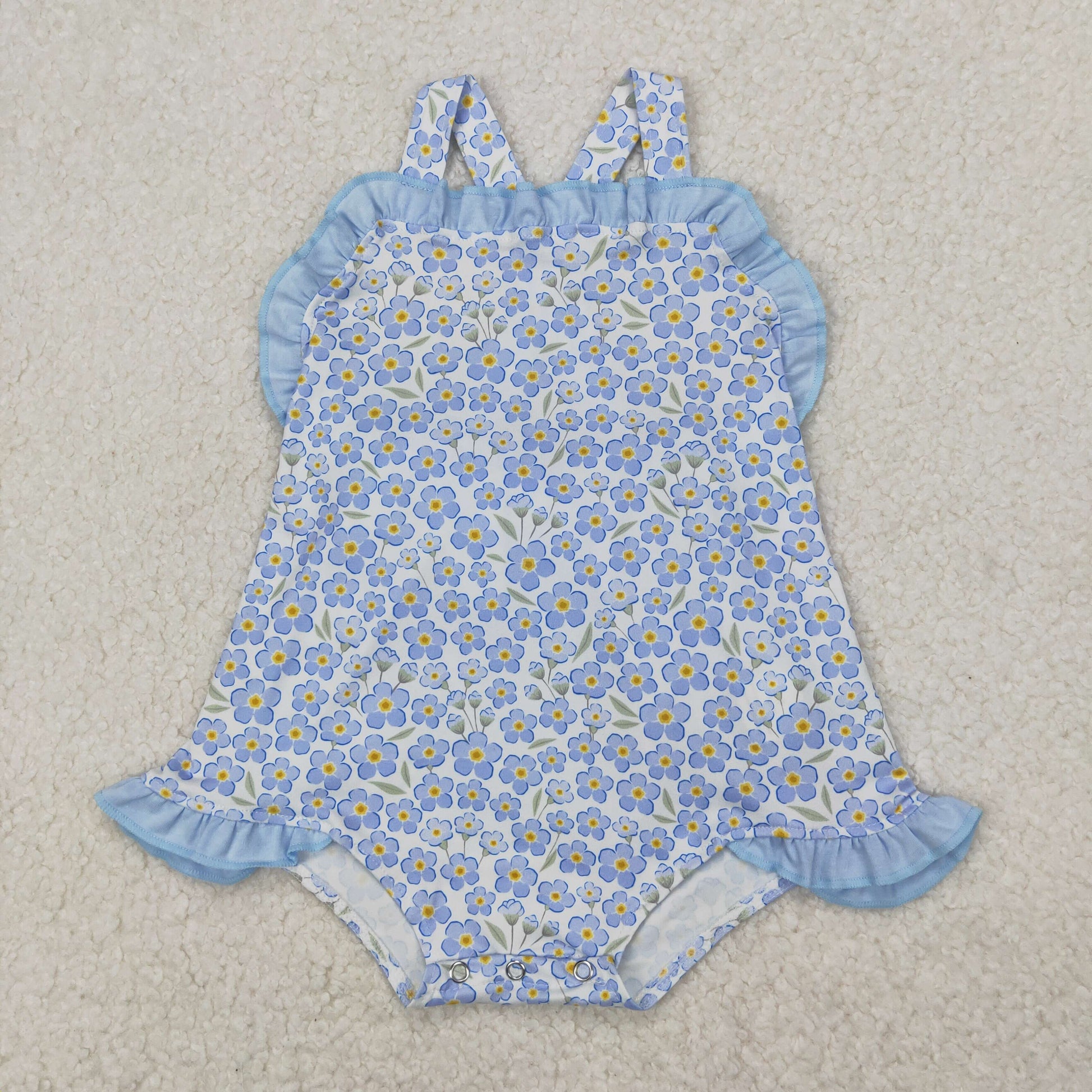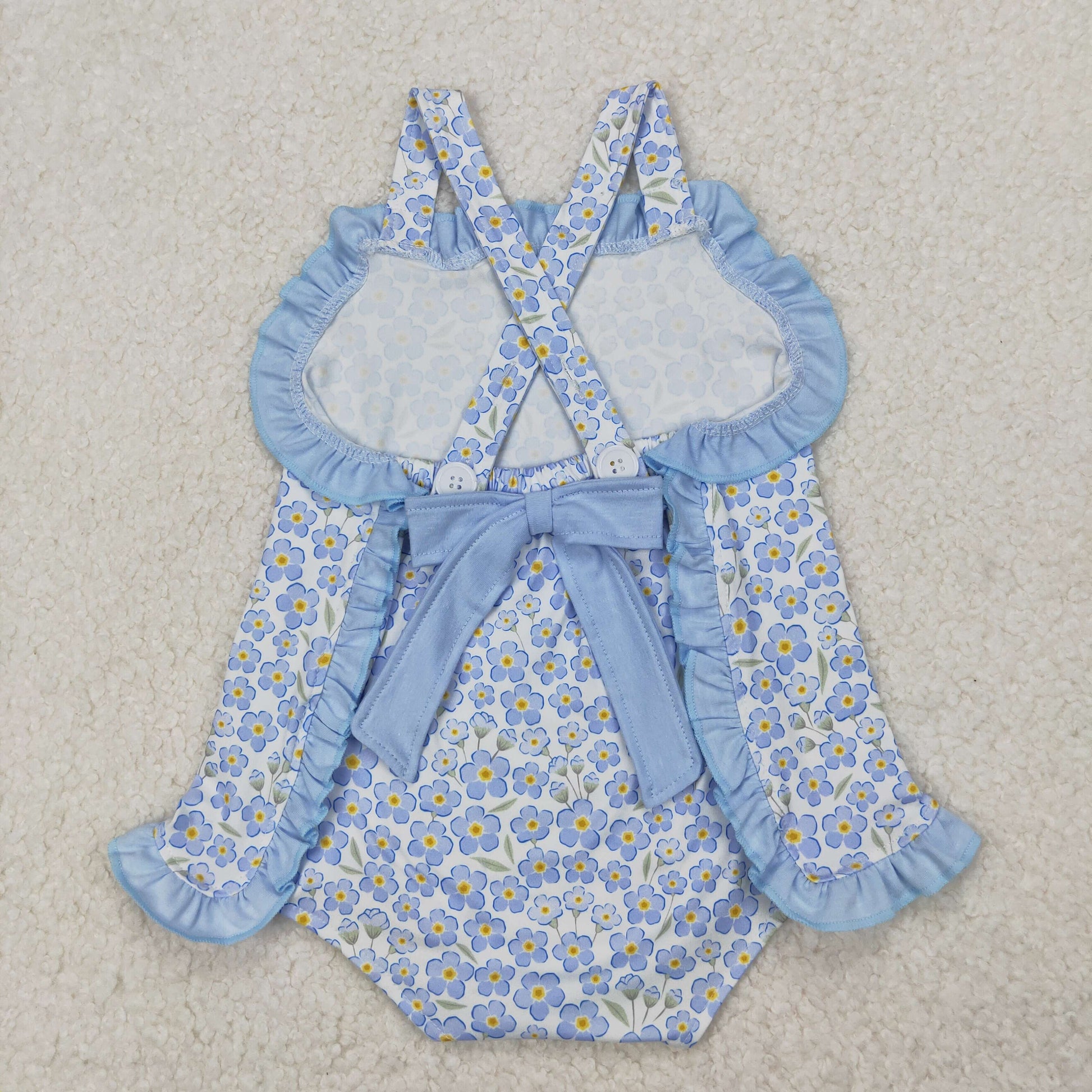 SR2791 Blue Flower Ruffle Bubble Romper Girls Boutique Outfits 202503 RTS