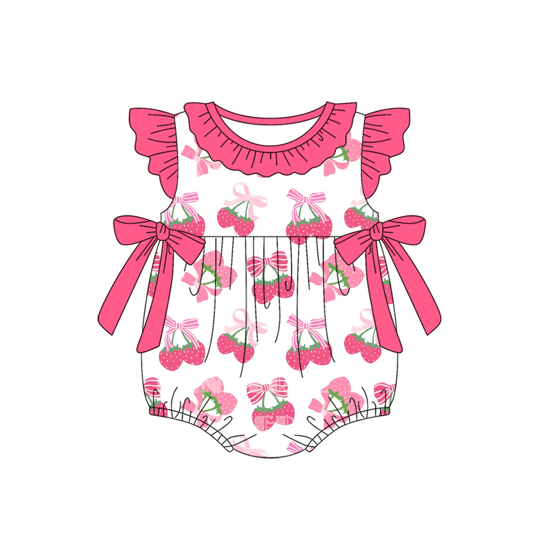 Preorder SR3059 Rose Red Strawberry Bows Flying Sleeve Romper Baby Girls Romper 202504