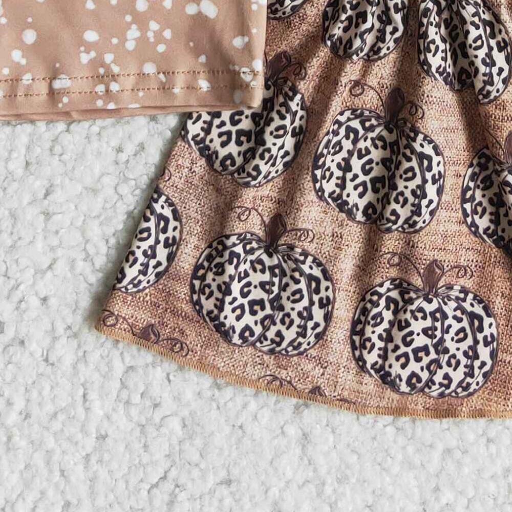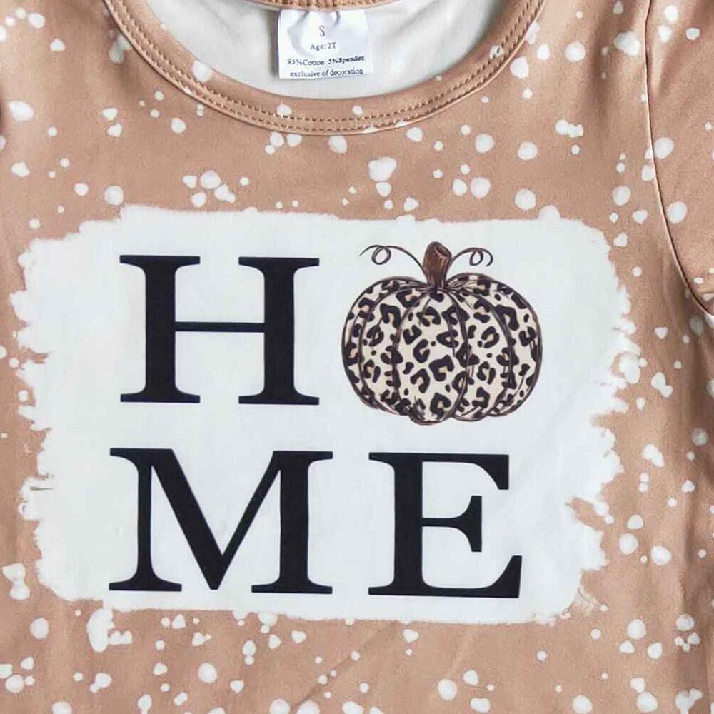 promotion RTS A10-13 Halloween Pumpkin Leopard Home Girls Short Sleeve Bell Bottom Pants Outfits