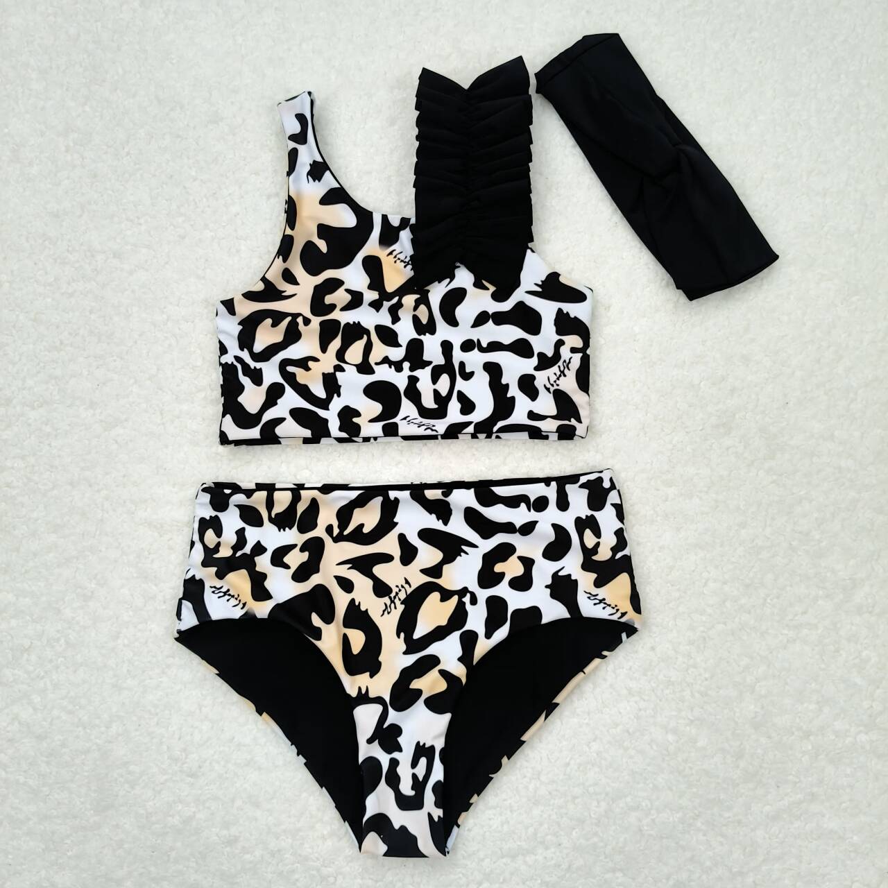 S0223 NO MOQ Leopard print orange and white bathing suit