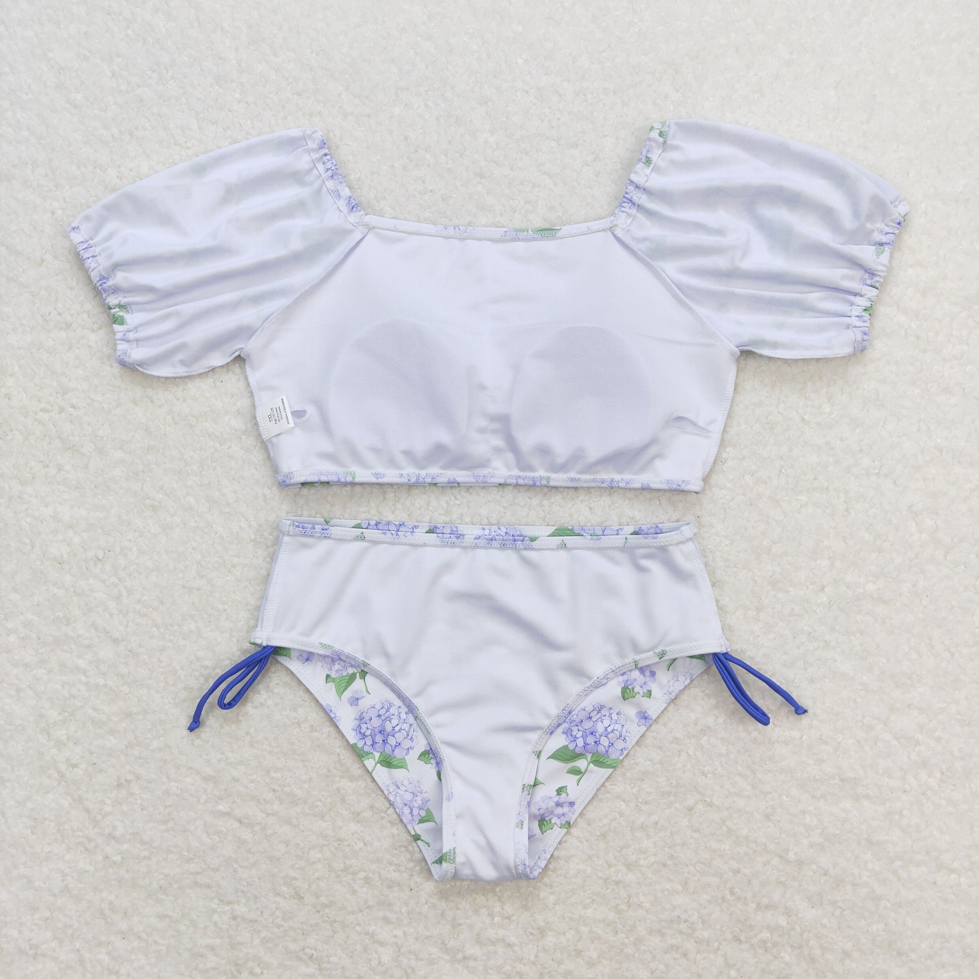 S0330 flower blue purple print short sleeve swimsuit RTS 202509