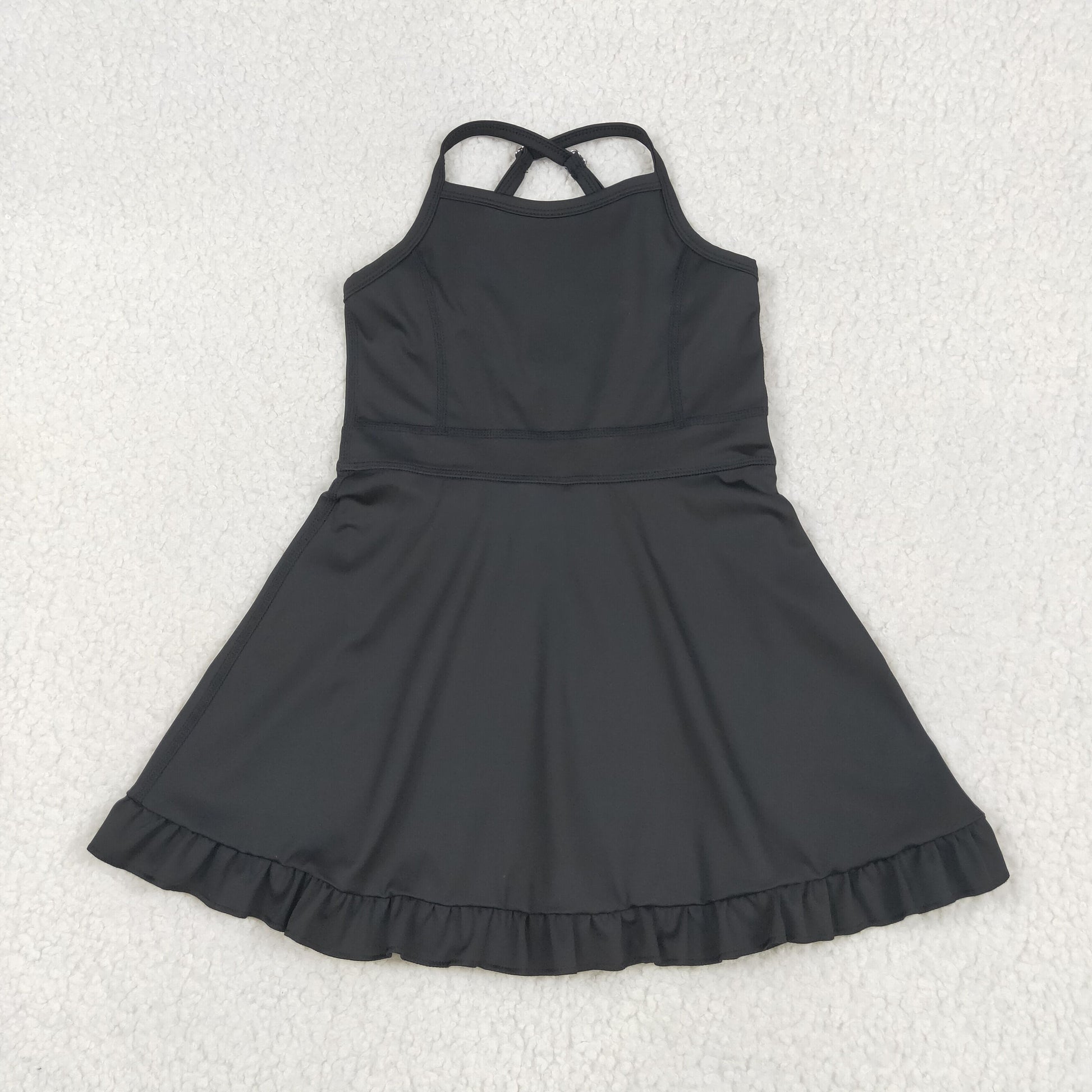S0552 Girls Black Yoga Halter Dress & Swimming Wear RTS Free Shipping Over $100