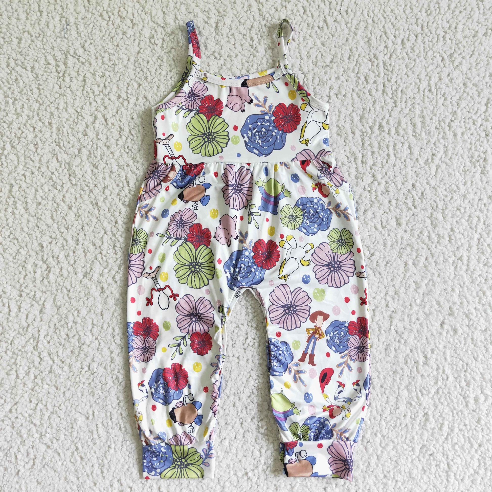 promotion RTS SR0062 Pink Blue Floral Cartoon Girls Sleeveless Jumpsuit
