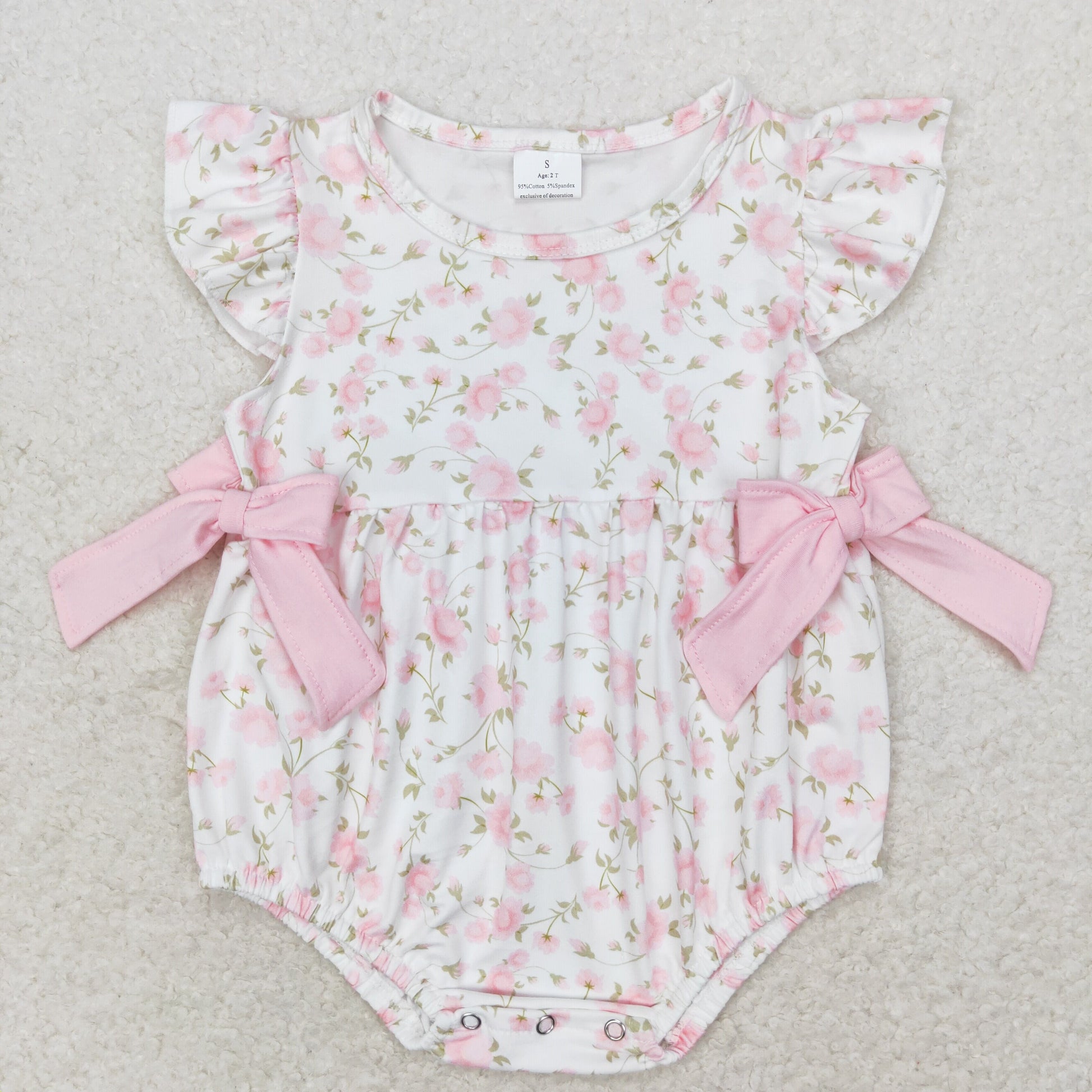 SR1765 floral bow pink white vest romper high quality romper dress baby