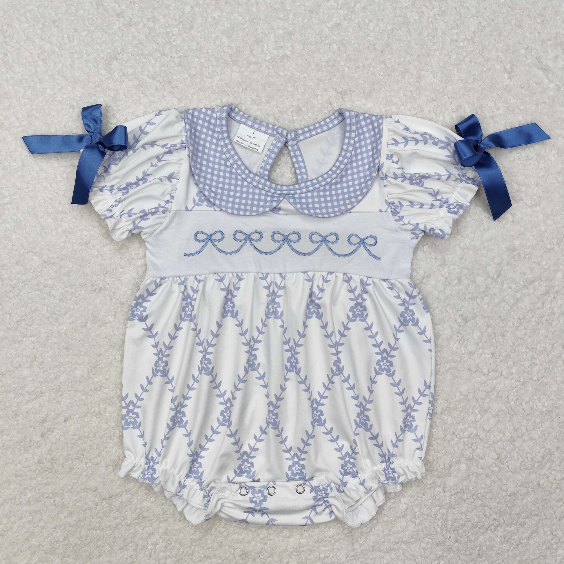 SR2146 Embroidery Blue Purple Bow short sleeve romper girls boutique romper RTS 202501