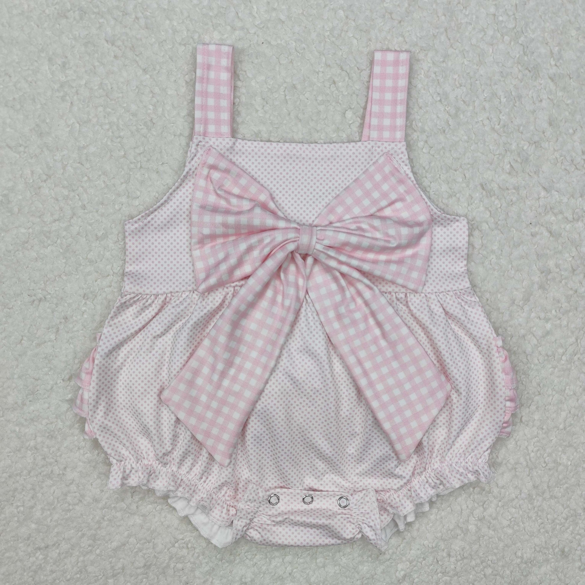 SR2280 Light Pink Plaid Bow Ruffle Sleeveless Romper baby girls boutique nightwear outfit baby summer clothes RTS 202501