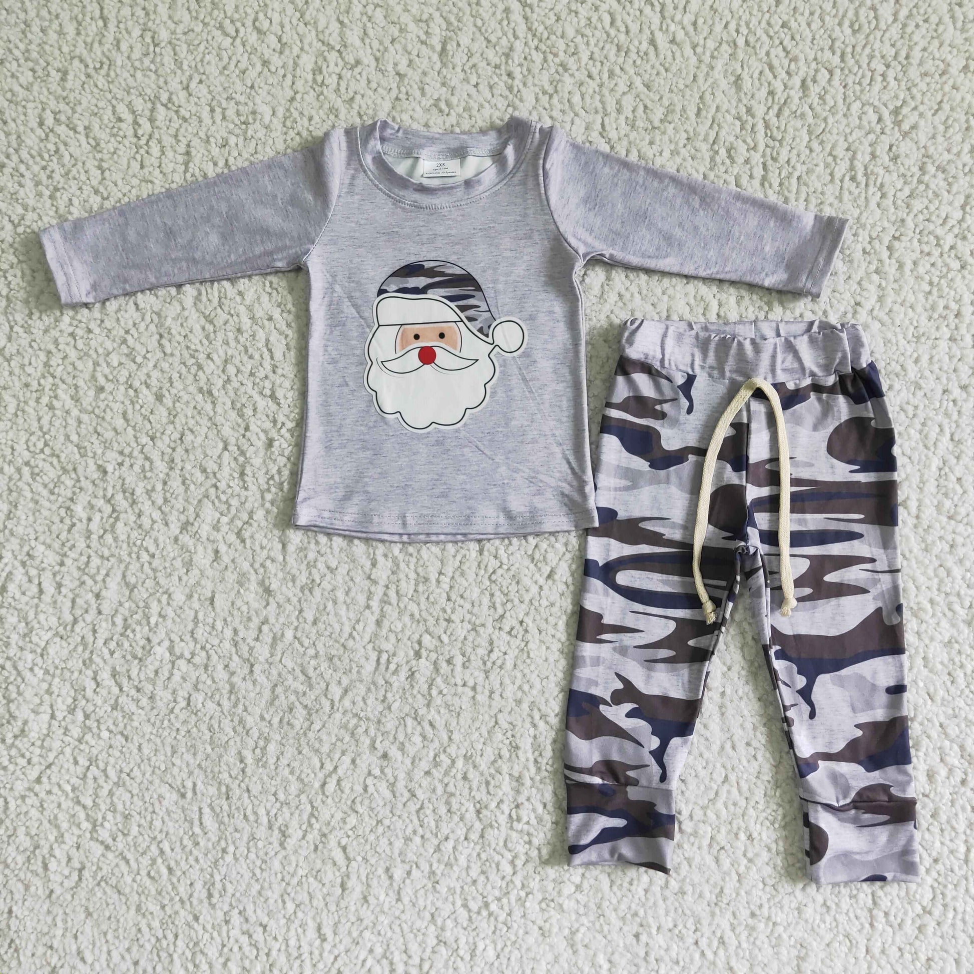 6 B7-37 Christmas Santa Grey Camo Boys Long Sleeve Pants Outfits