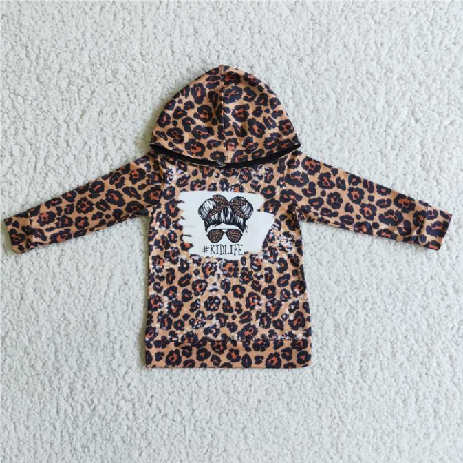 Clearance 6 C9-18 Kid Life Leopard Print Girls Long Sleeve Hoodies Top