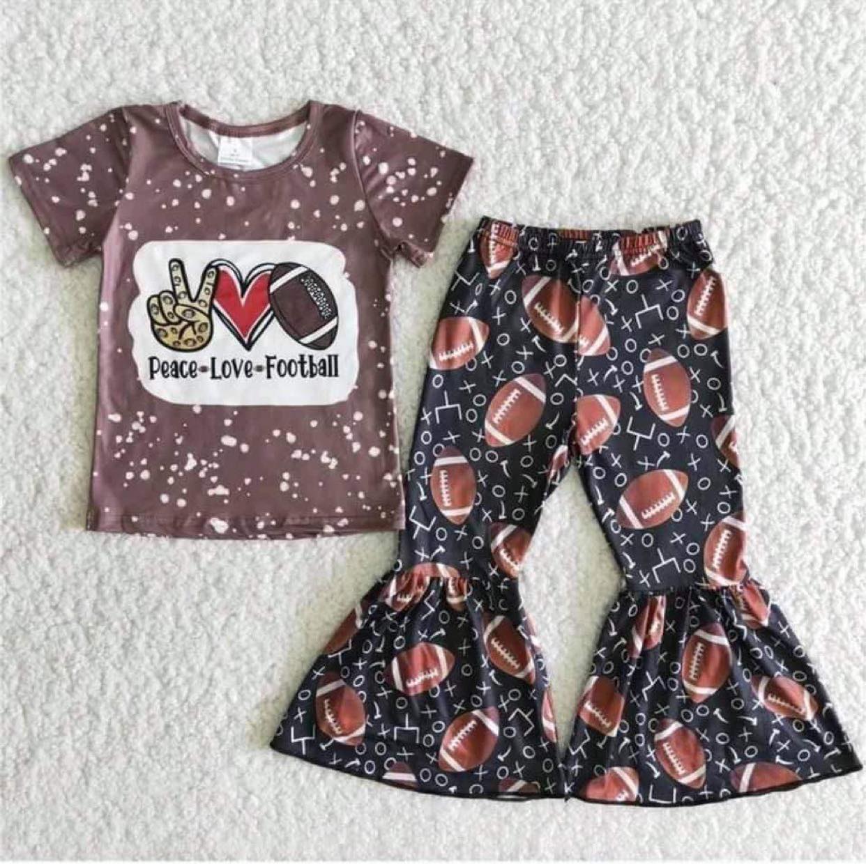 B5-16 Brown Peace Love Football Girls Short Sleeve Bell Bottom Pants Outfits