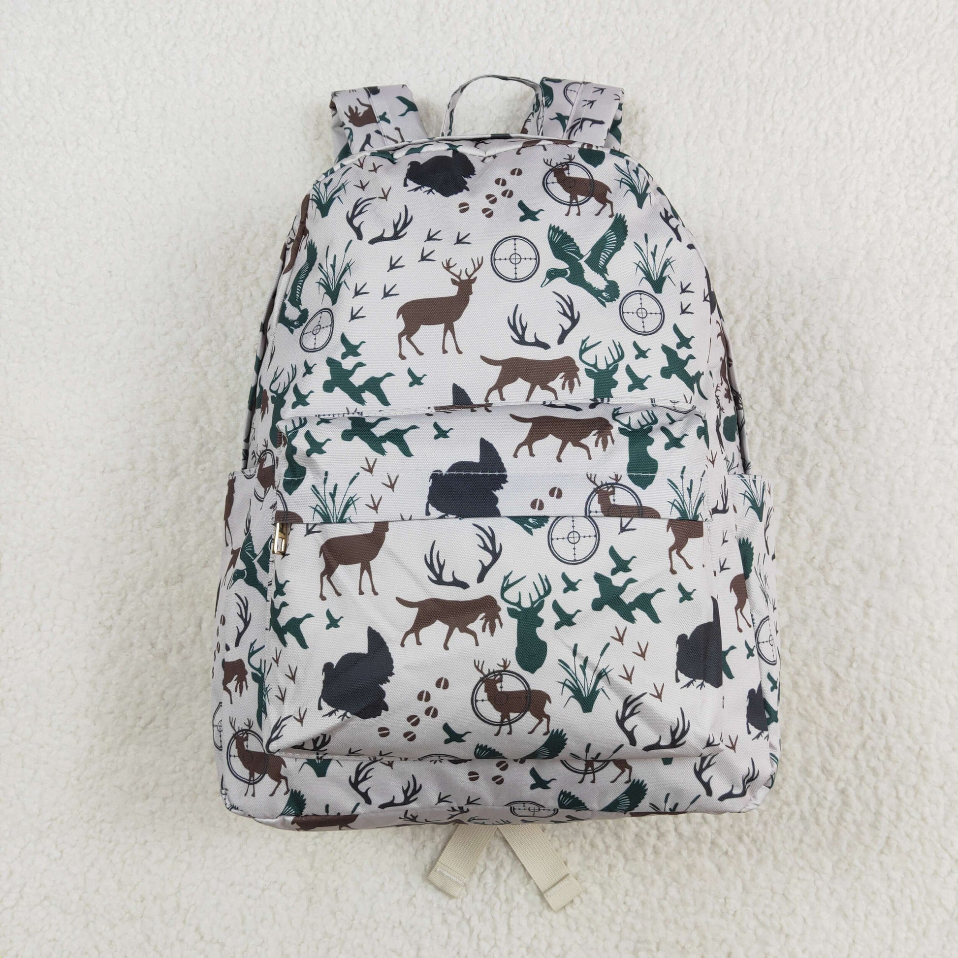 BA0231 Deer Duck Hunting White Backpack PU Leather 5*13.5*17 inches Bag RTS 202509