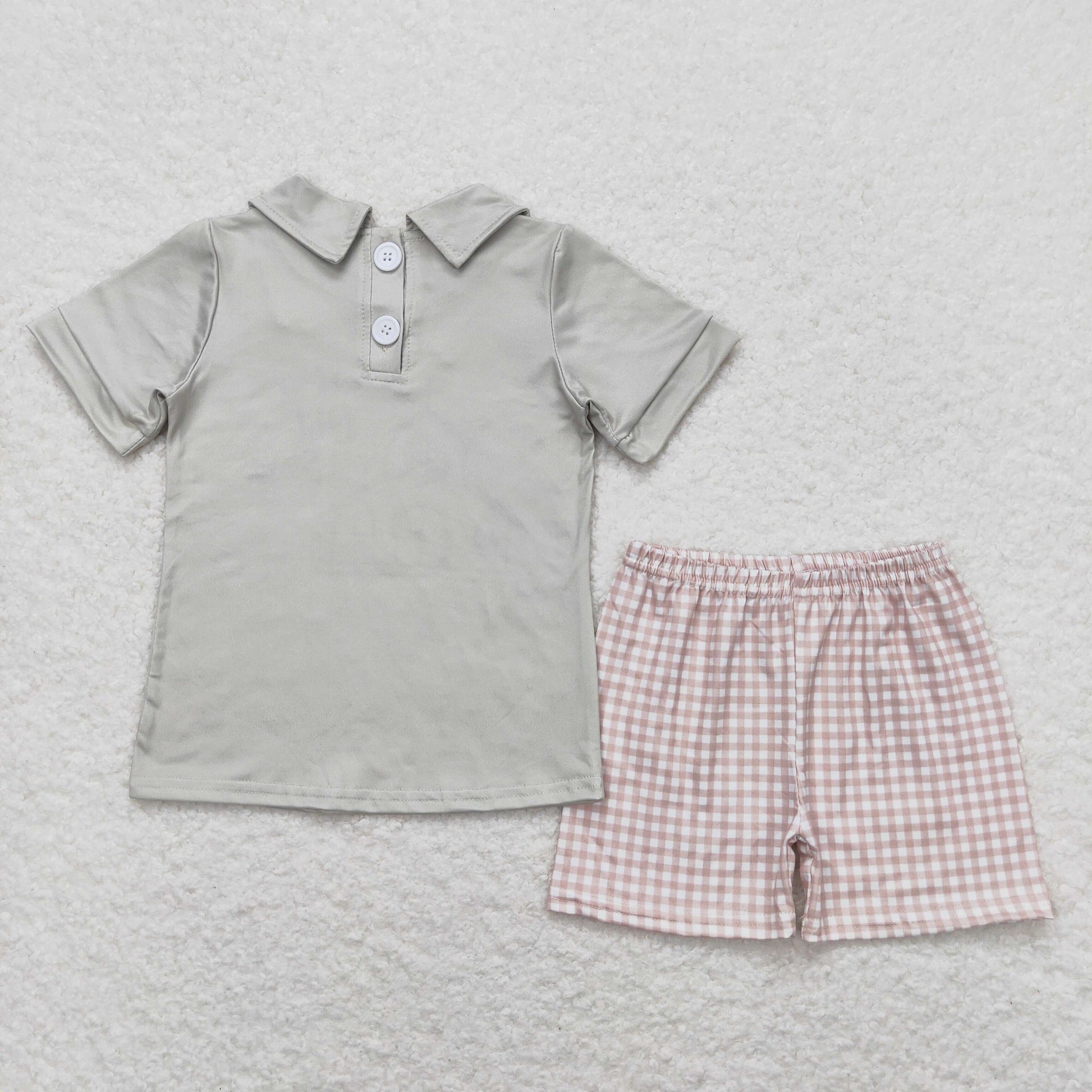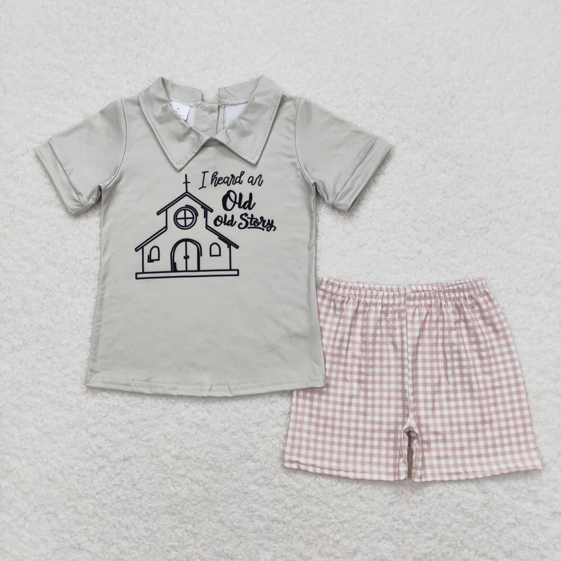 BSSO0742 Old Story Letter Boys Grey Short Sleeve Plaid Shorts Outfits RTS 202508