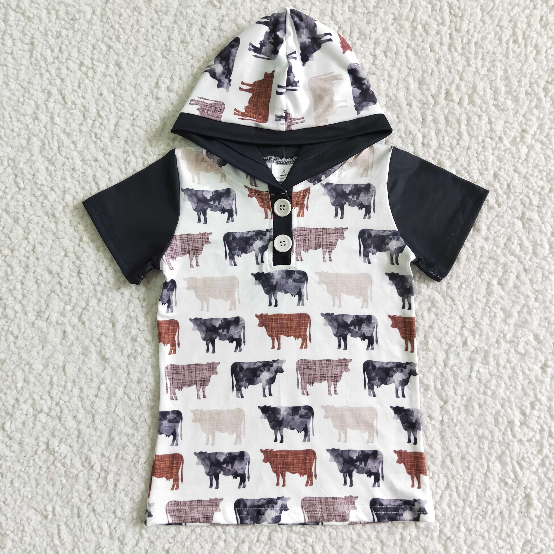 promotion RTS BT0009 Black Cows Short Sleeve Top Hoodies Boys T-shirts