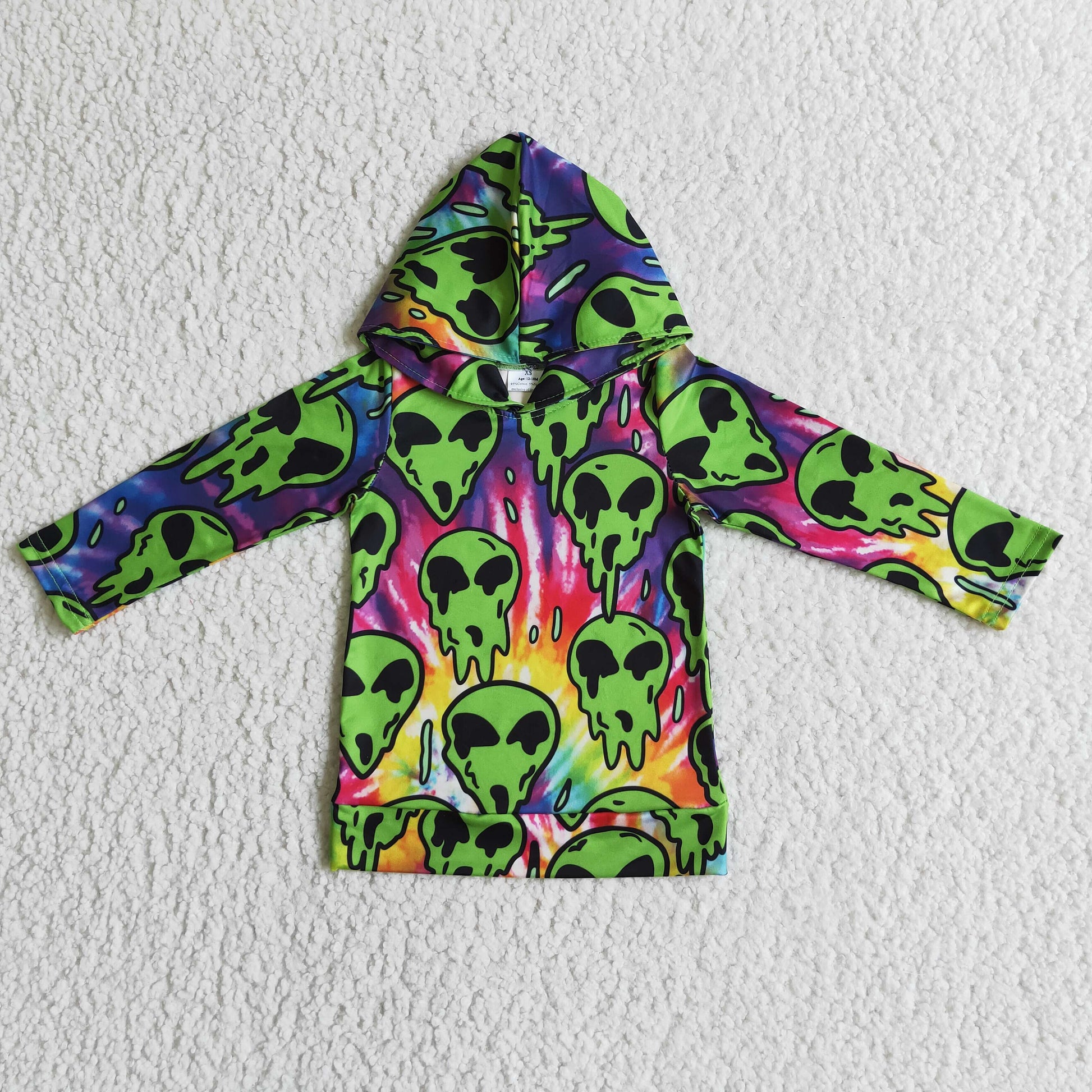 BT0049 Halloween Ghost Tie Dye Green Boys Long Sleeve Hoodies Top