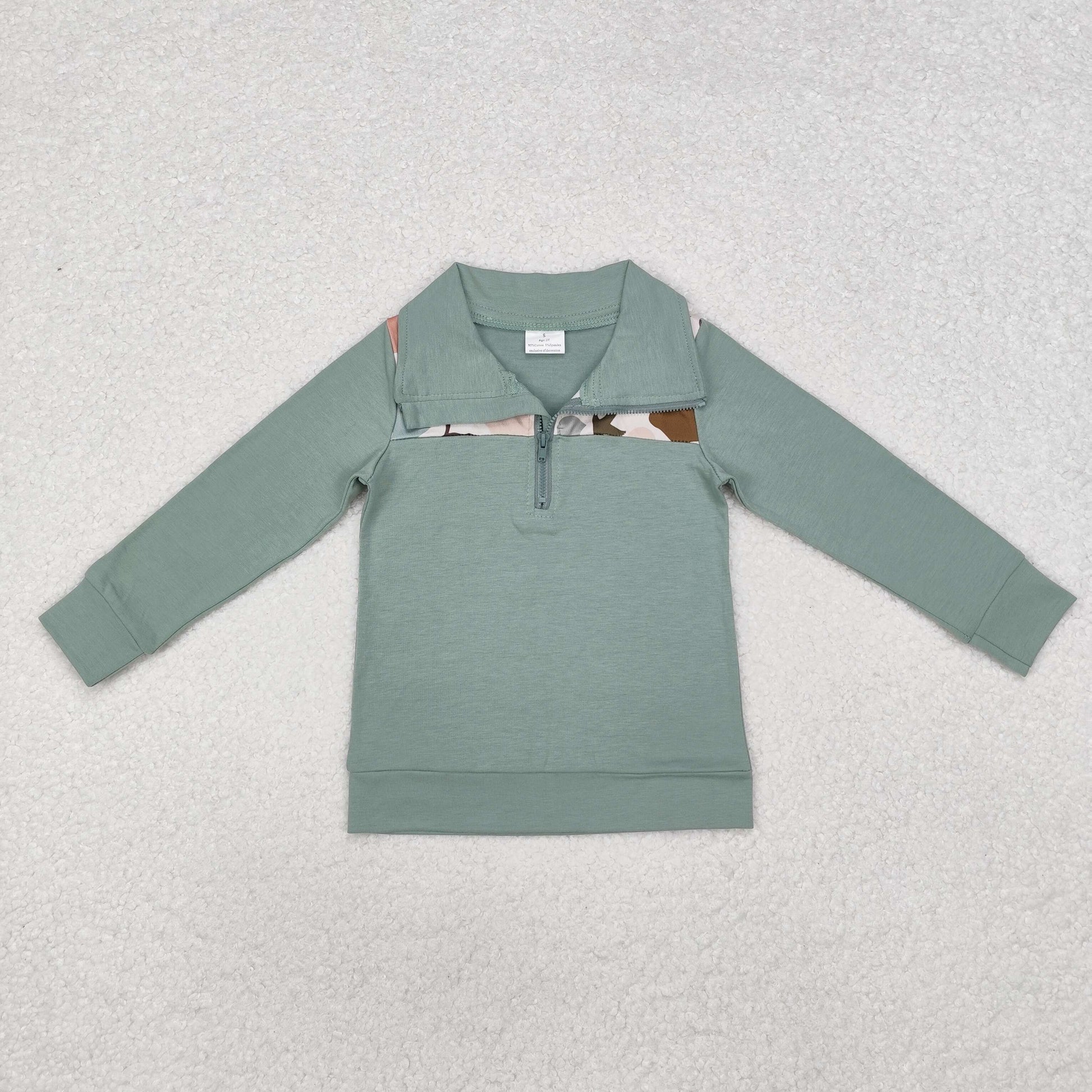 BT0796 Puppy duck camouflage green zipper long-sleeved top