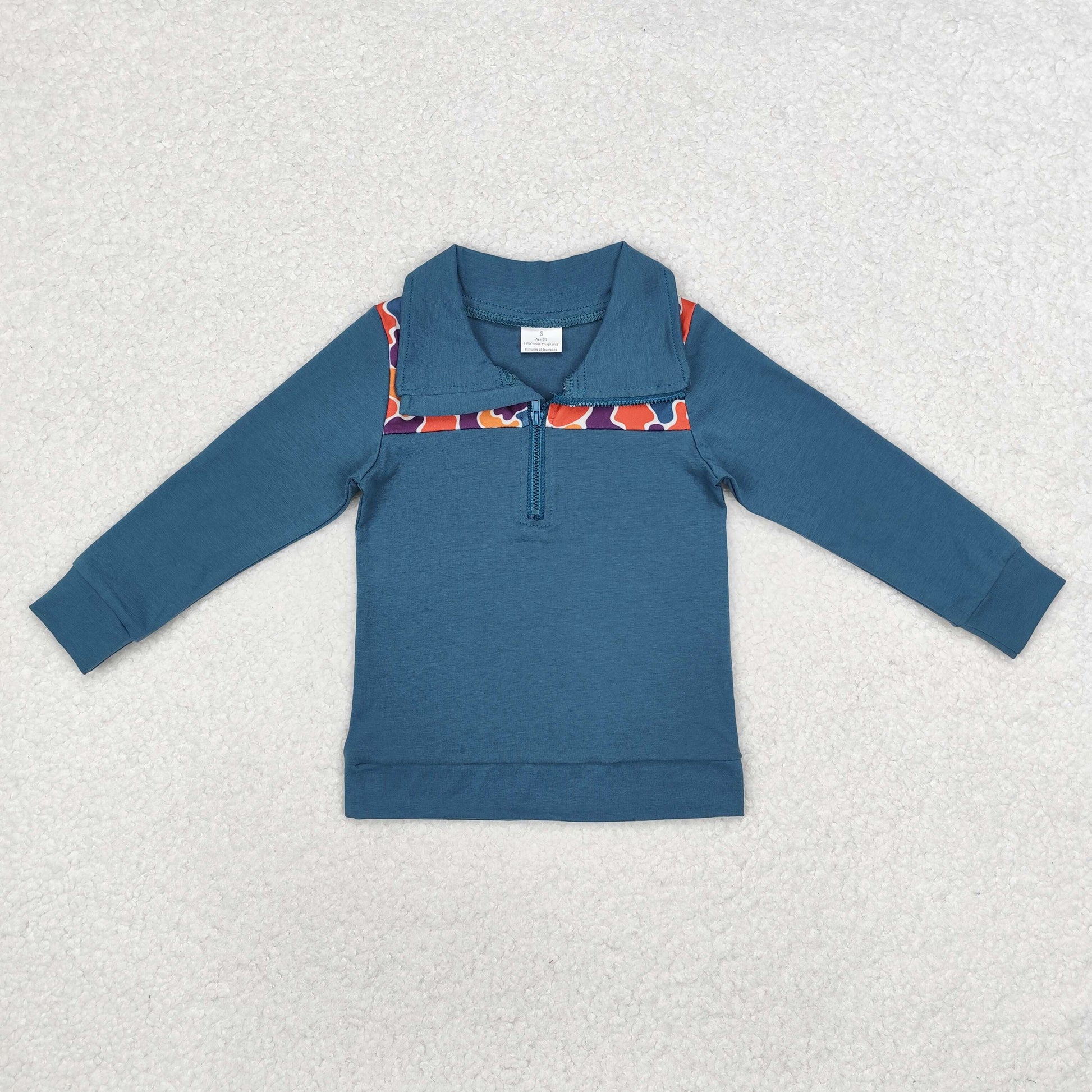 BT0798 Blue-brown camouflage zip-up long-sleeved top