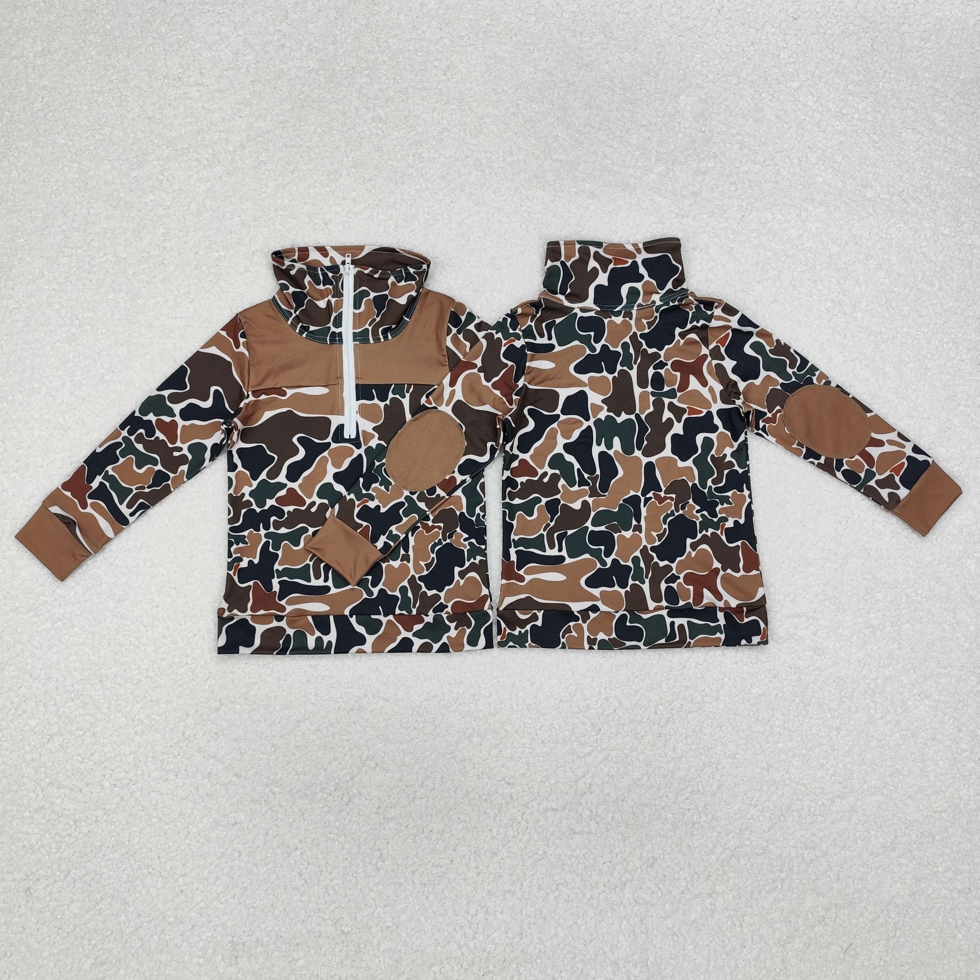 BT0810 Brown green camouflage beige zip-up long-sleeved top