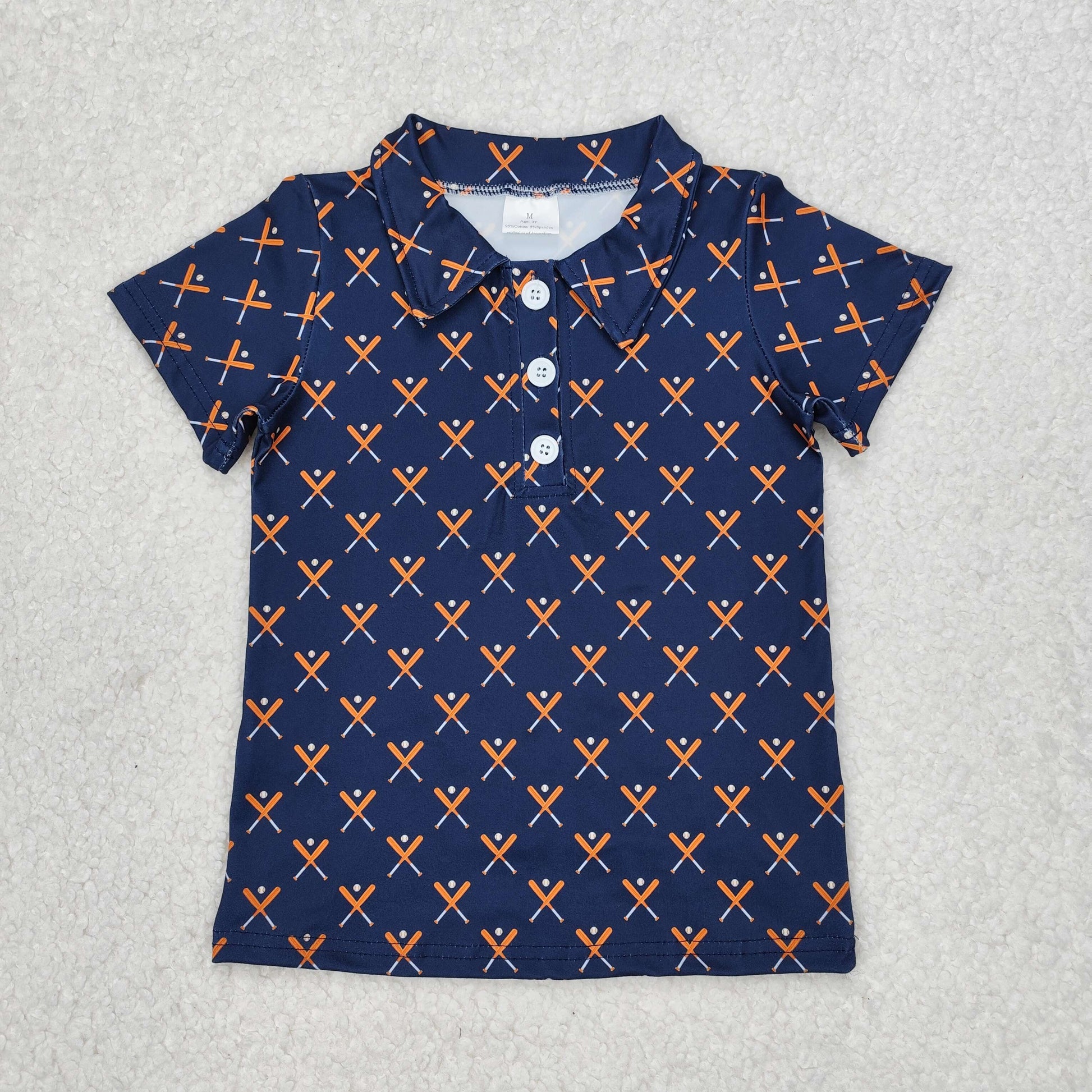 BT1120 Navy Blue Baseball Polo Button Short Sleeve Top Shirts Boys Boutique clothes 202503 RTS