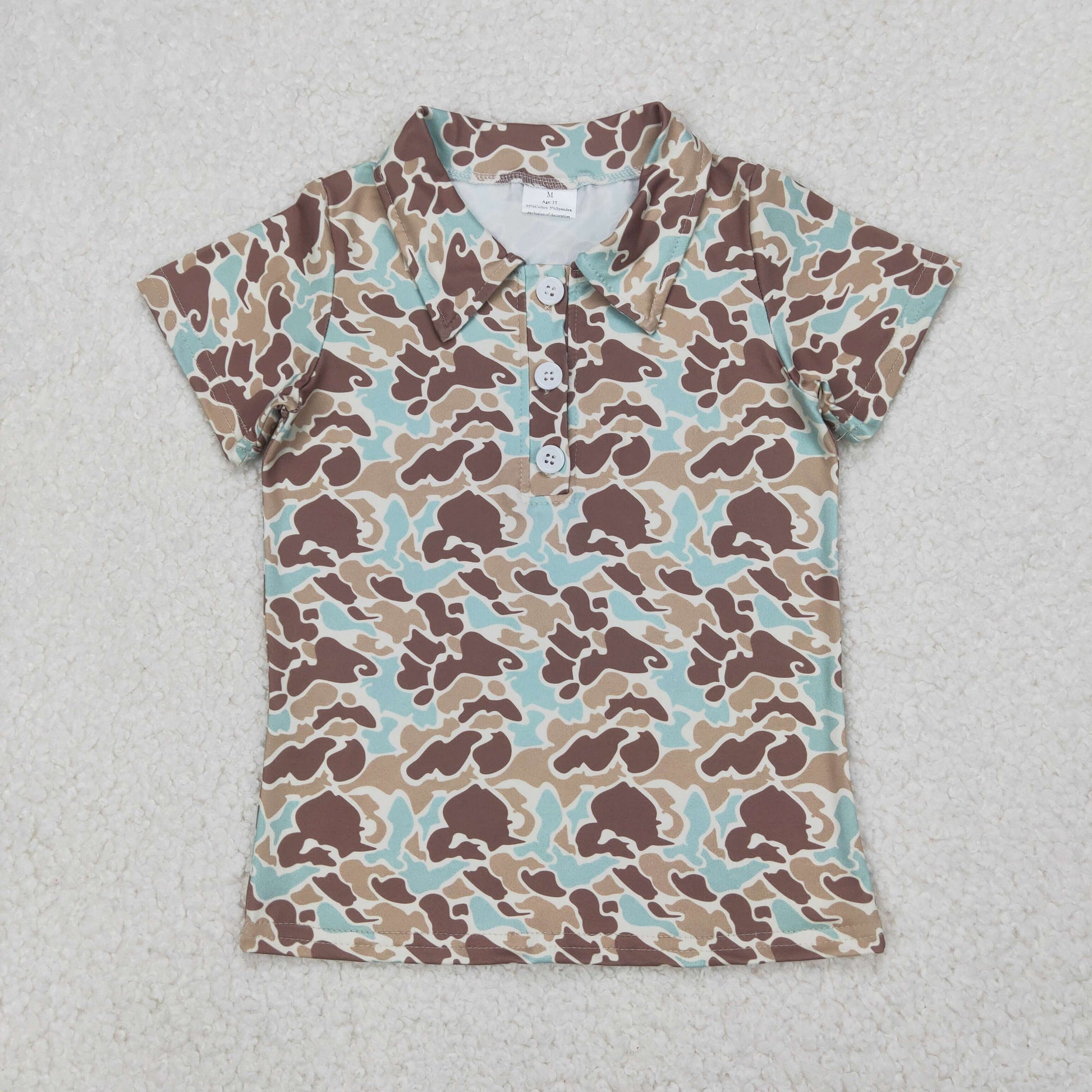 BT1212 Brown Green Camo Polo Button Short Sleeve Top Shirts Boys Boutique clothes 202504 RTS
