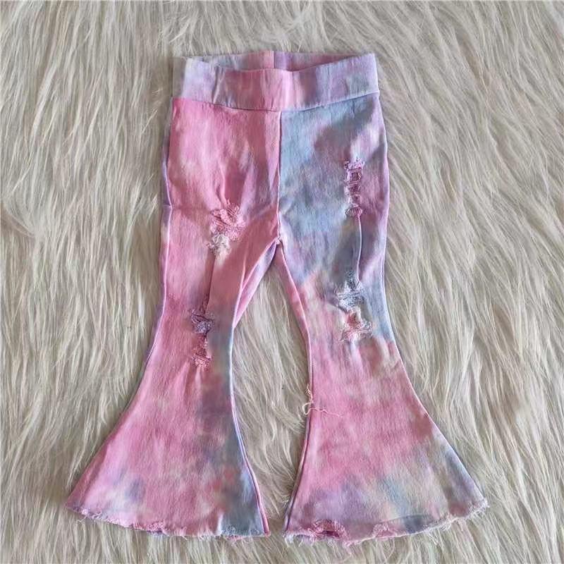 C15-16 Pink & Purple Baby Girls Hot Sale Tie-dye Bell-bottom Denim Jeans RTS Free Shipping Over $100