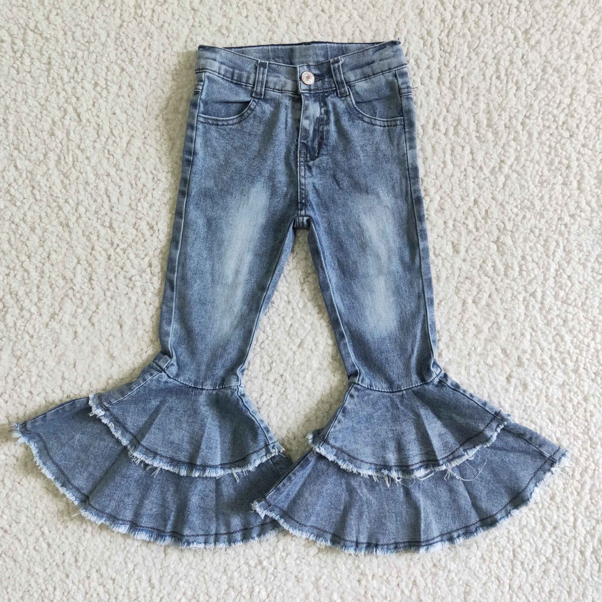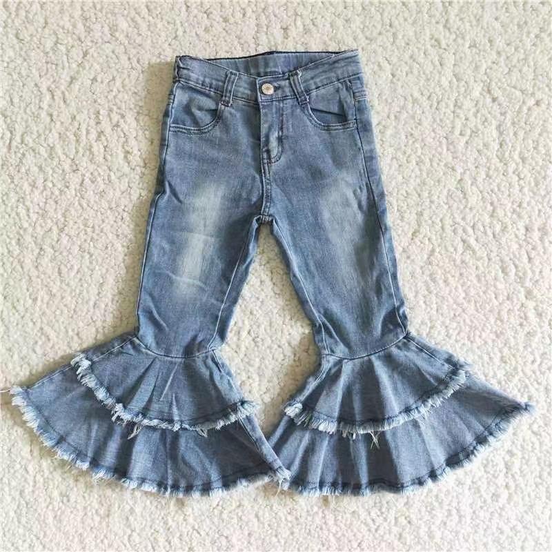 C5-15 Blue Bleach Designs Girls Double Ruffles Denim Jeans