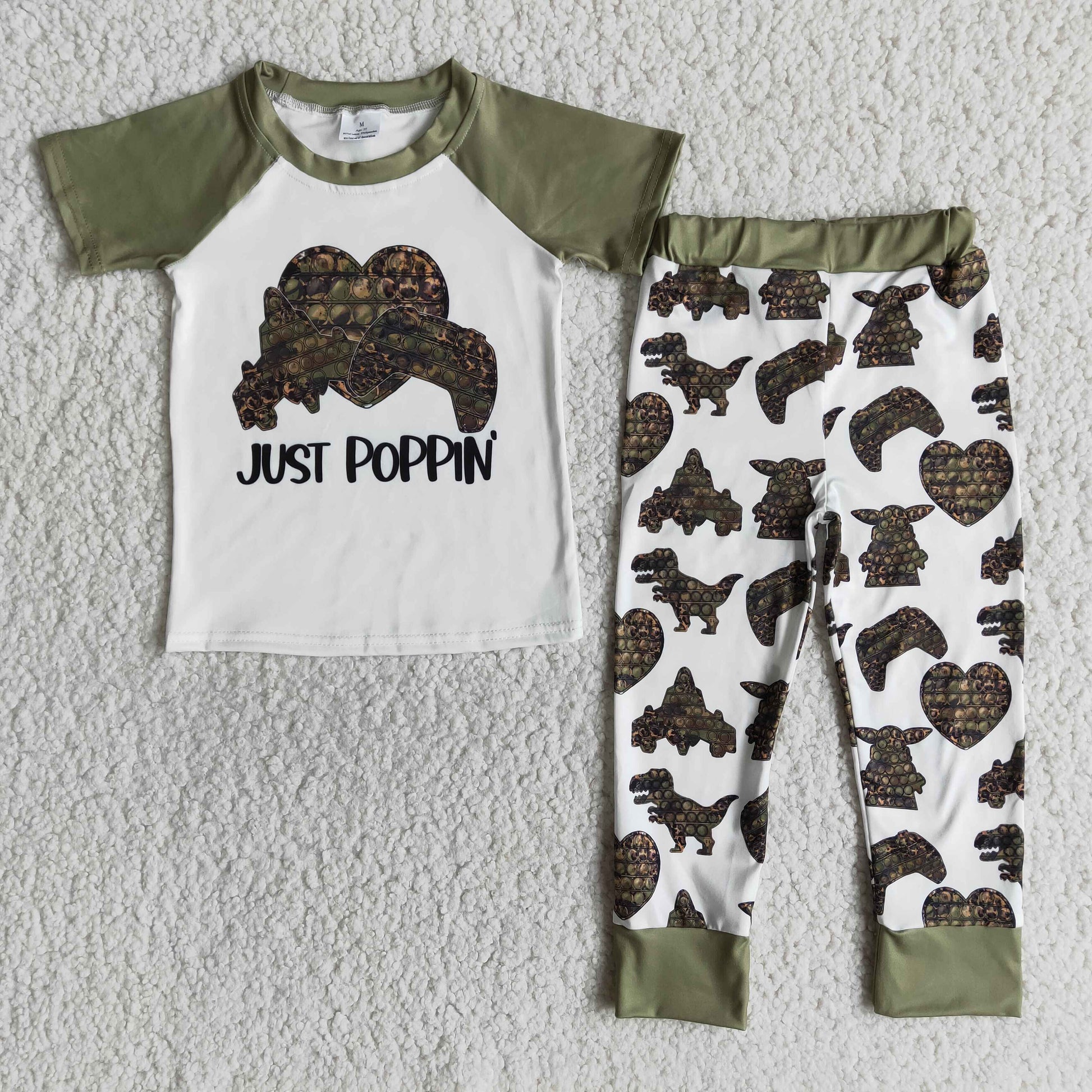 Clearance E12-16 Dinosaur short sleeve pants suit for boys Valentine's Day