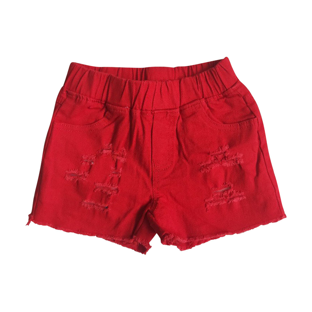 D13-14 Baby Girl Clothes Red Denim Shorts RTS Free Shipping Over $100
