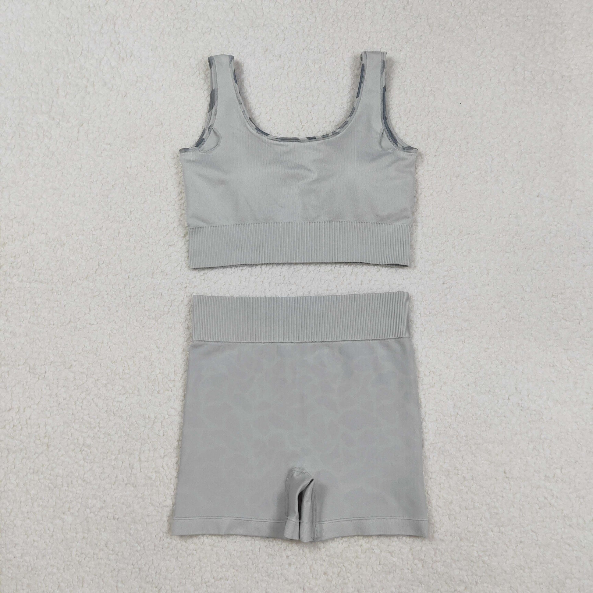 Free Shipping Over $100 GSSO2702 Adult Women Gray Camouflage Sleeveless Shorts Sets