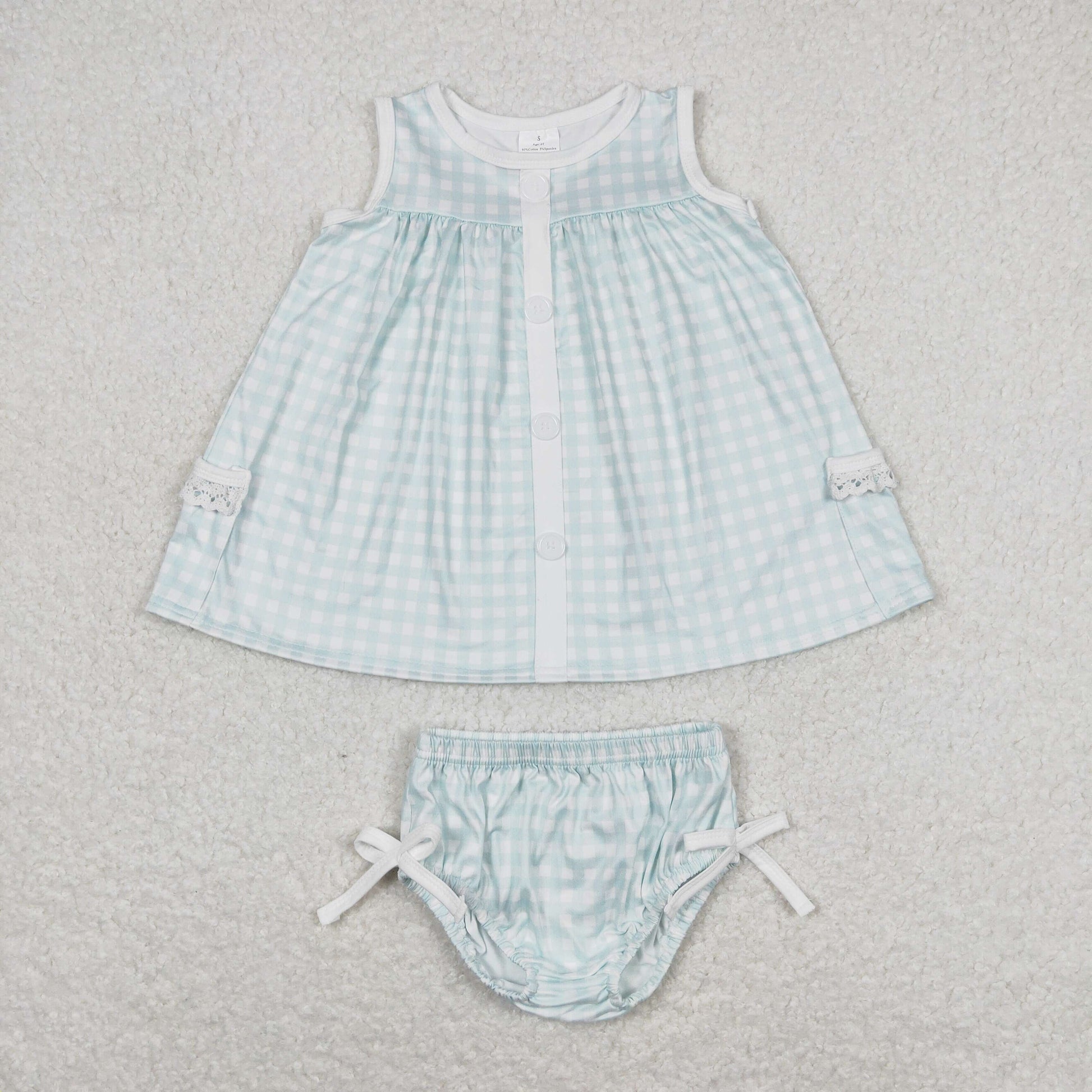 GBO0259 Girls Boutique Blue Green Plaid Lace Ruffle Pocket Sleeveless Top Briefs Set RTS 202508