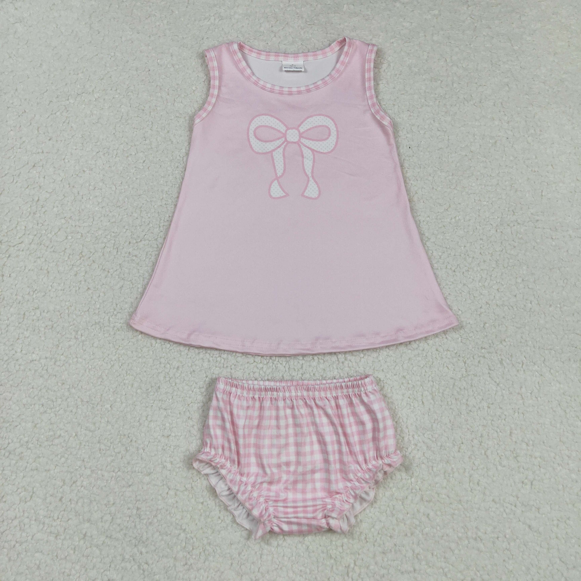 GBO0469 pink bows plaid sleeveless top briefs girls sets 202508 RTS