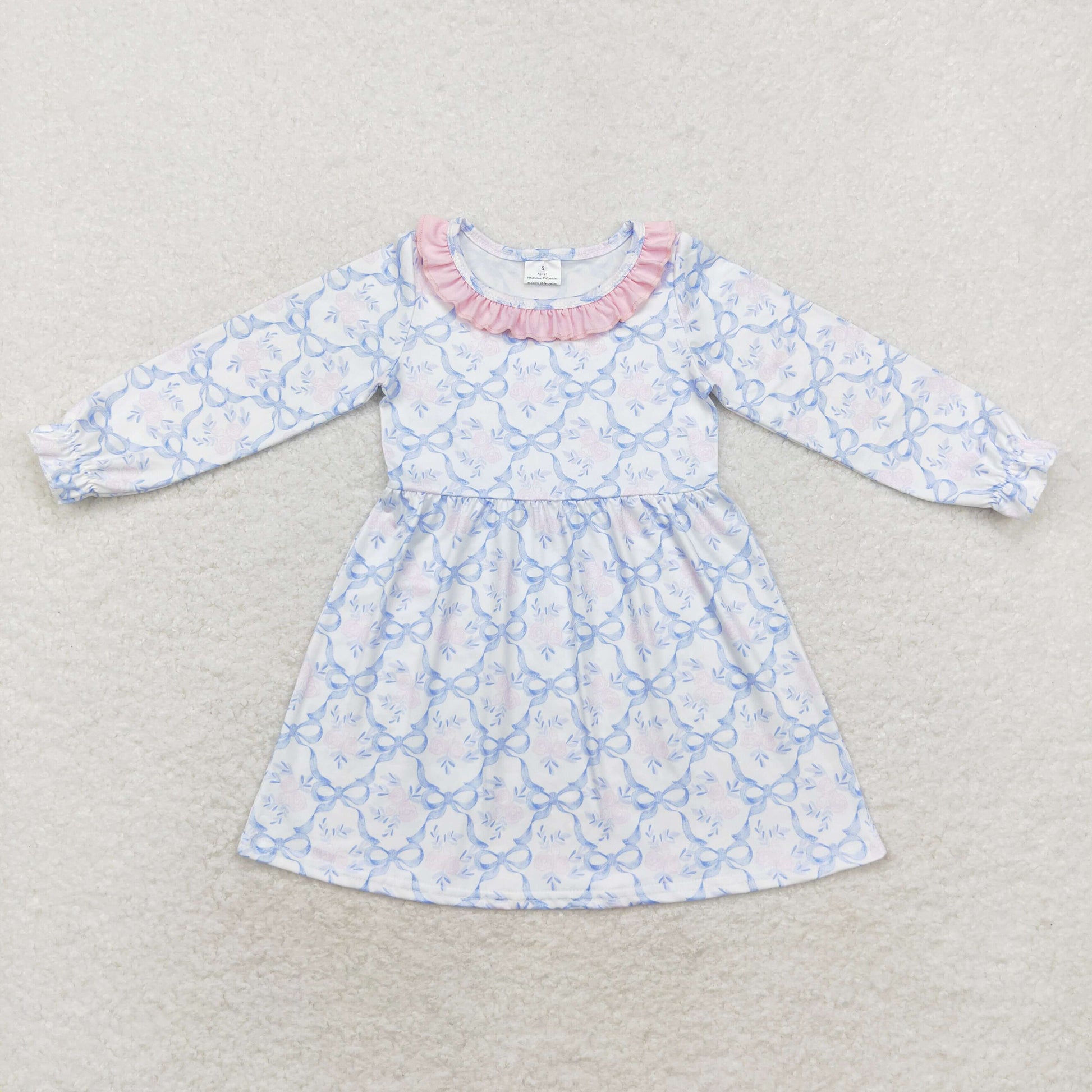 GLD0693 Flower bow pattern Pink lace white long-sleeved dress
