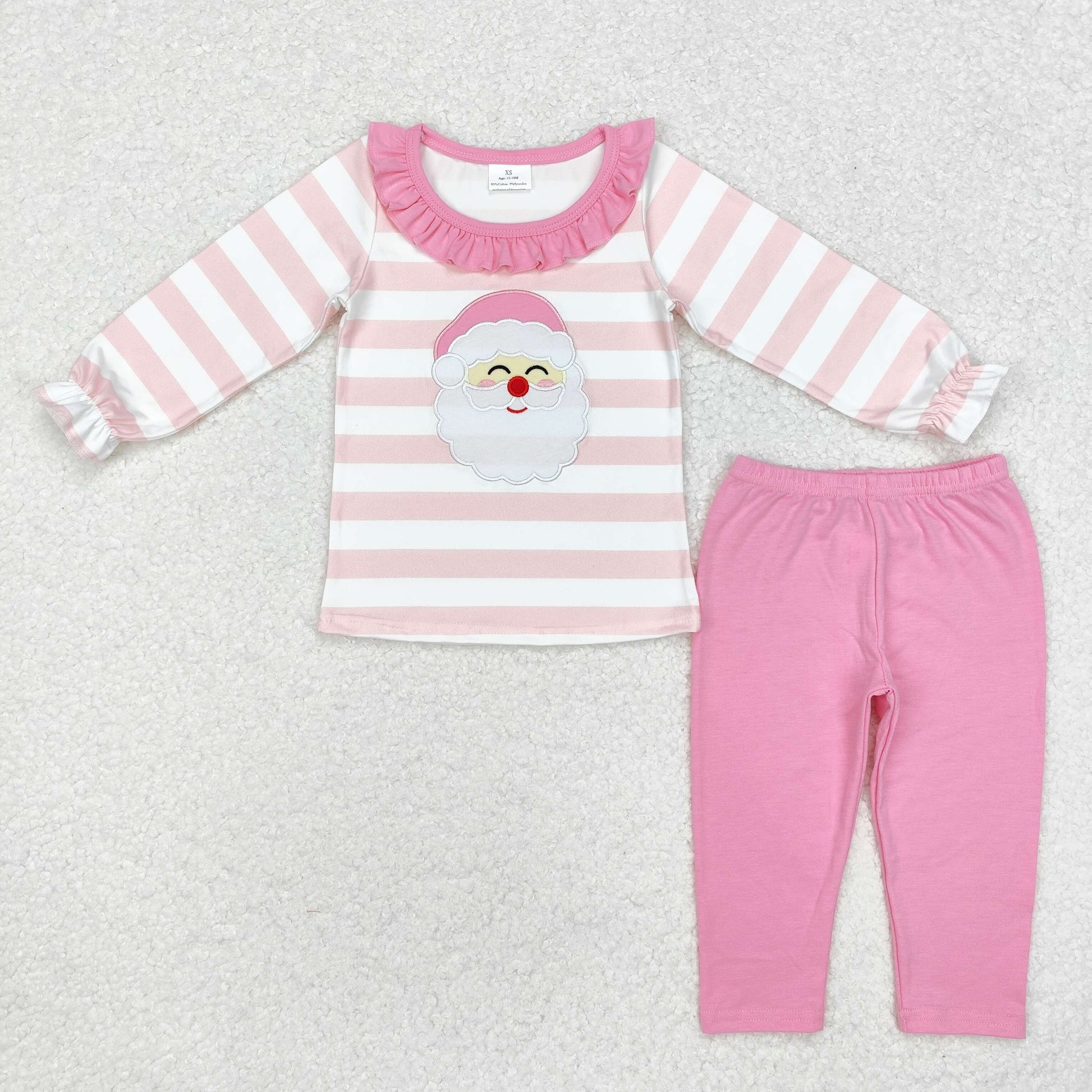GLP1739 Embroidered Santa lace pink-and-white striped long-sleeved pantsuit
