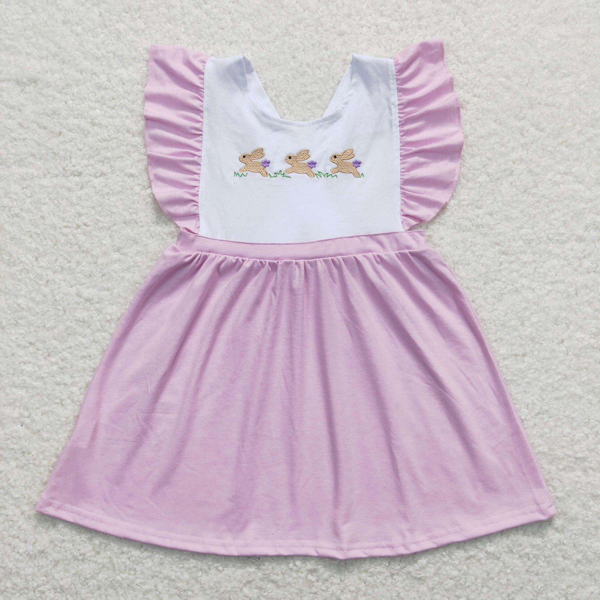 GSD0569 Embroidered Bunny Purple Ruffle Flying Sleeve Dresses for Girls RTS 202508