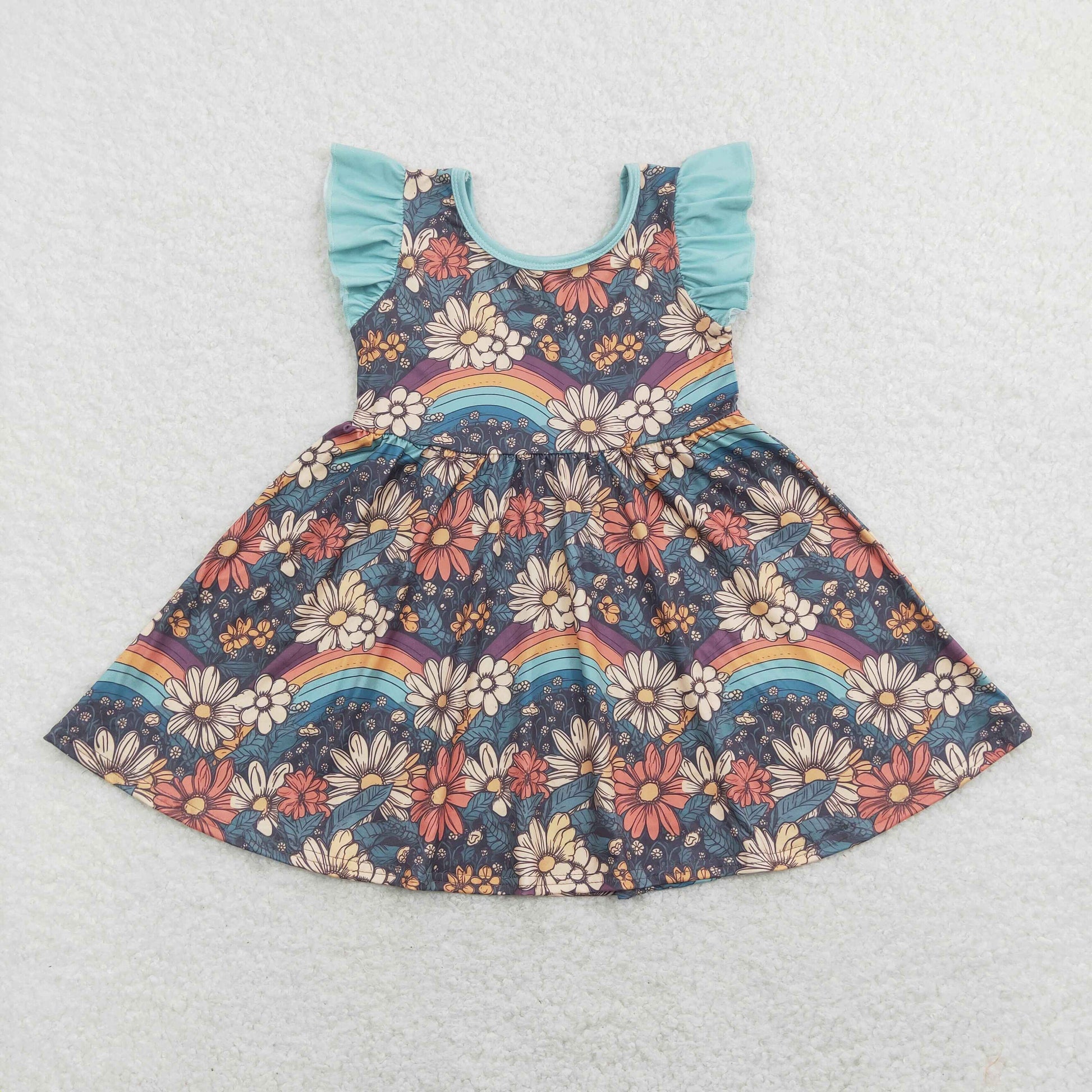 GSD0734 Flower Smiley Flying Sleeve Dresses for Girls High Quality RTS 202507