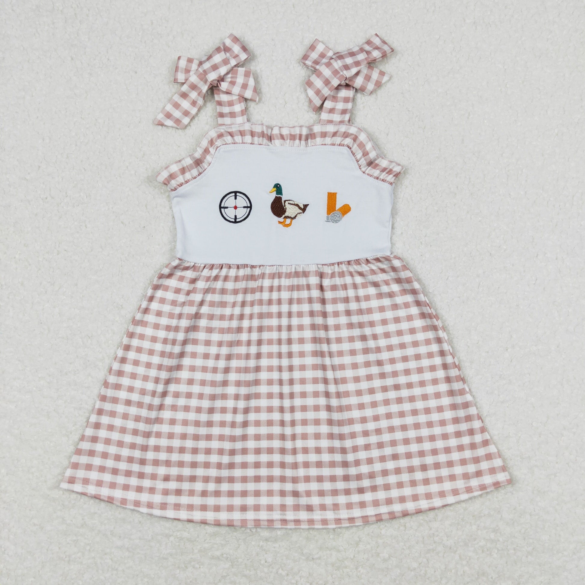 GSD0817 Embroidered Duck Hunting Pink Plaid Ruffle Halter Girls Dresses RTS 202508