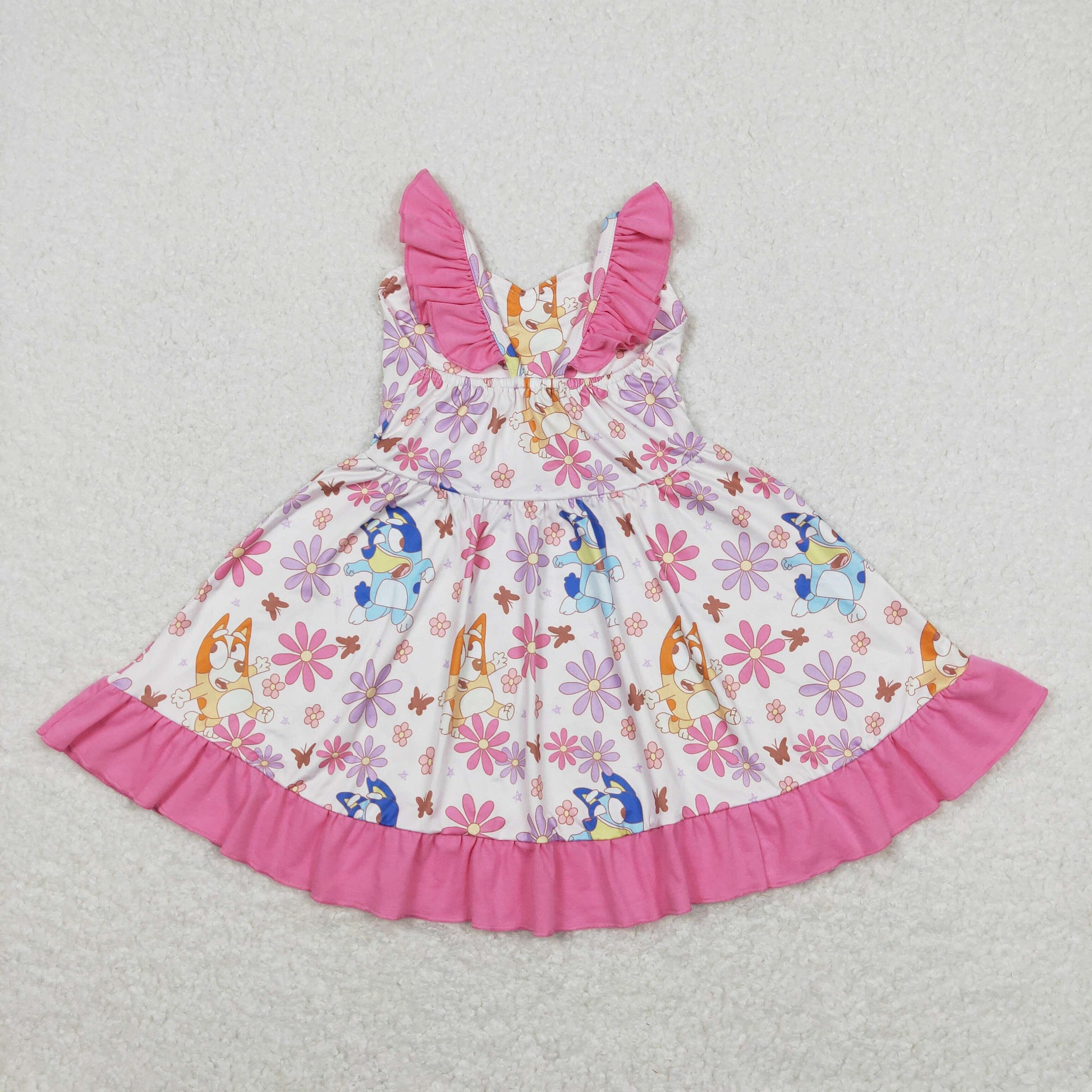 GSD0865 Cartoon Bluey Flower Pink Ruffle Halter Dresses for Girls RTS 202508
