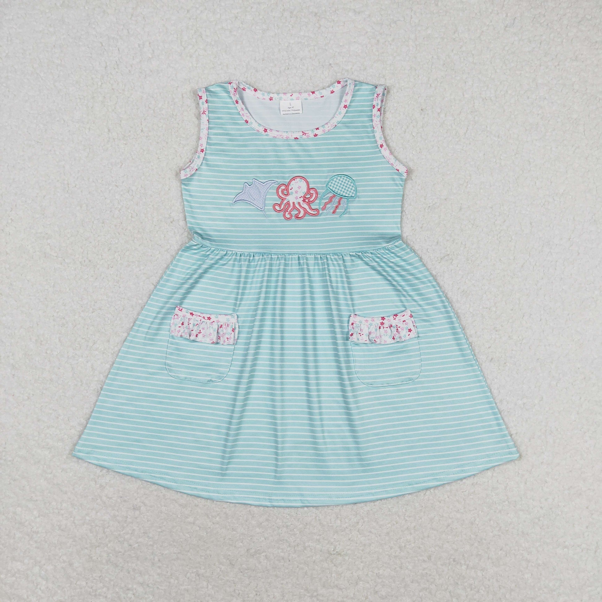 GSD0963 Embroidered octopus jellyfish striped turquoise sleeveless dress wholesale high quality princess dress for girl