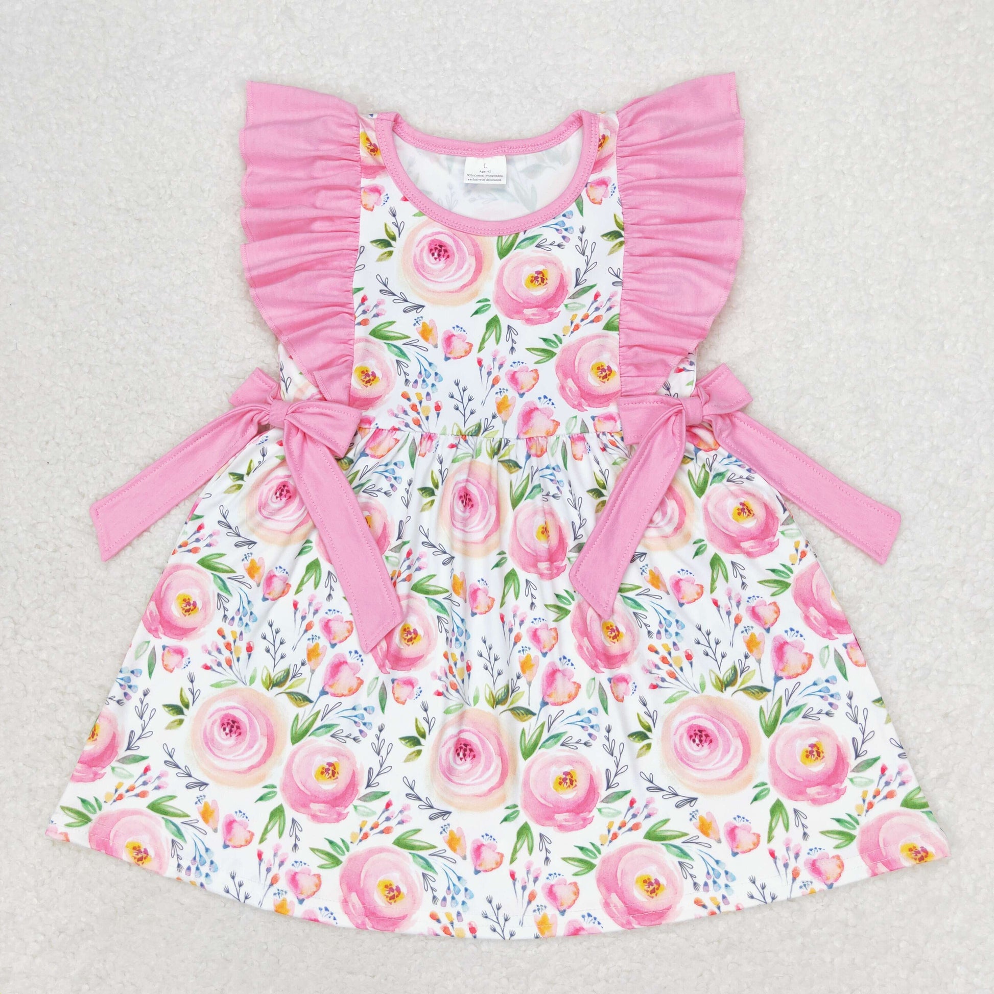 GSD1070 Flowers pink lace bow sleeveless dress high quality baby dress girls