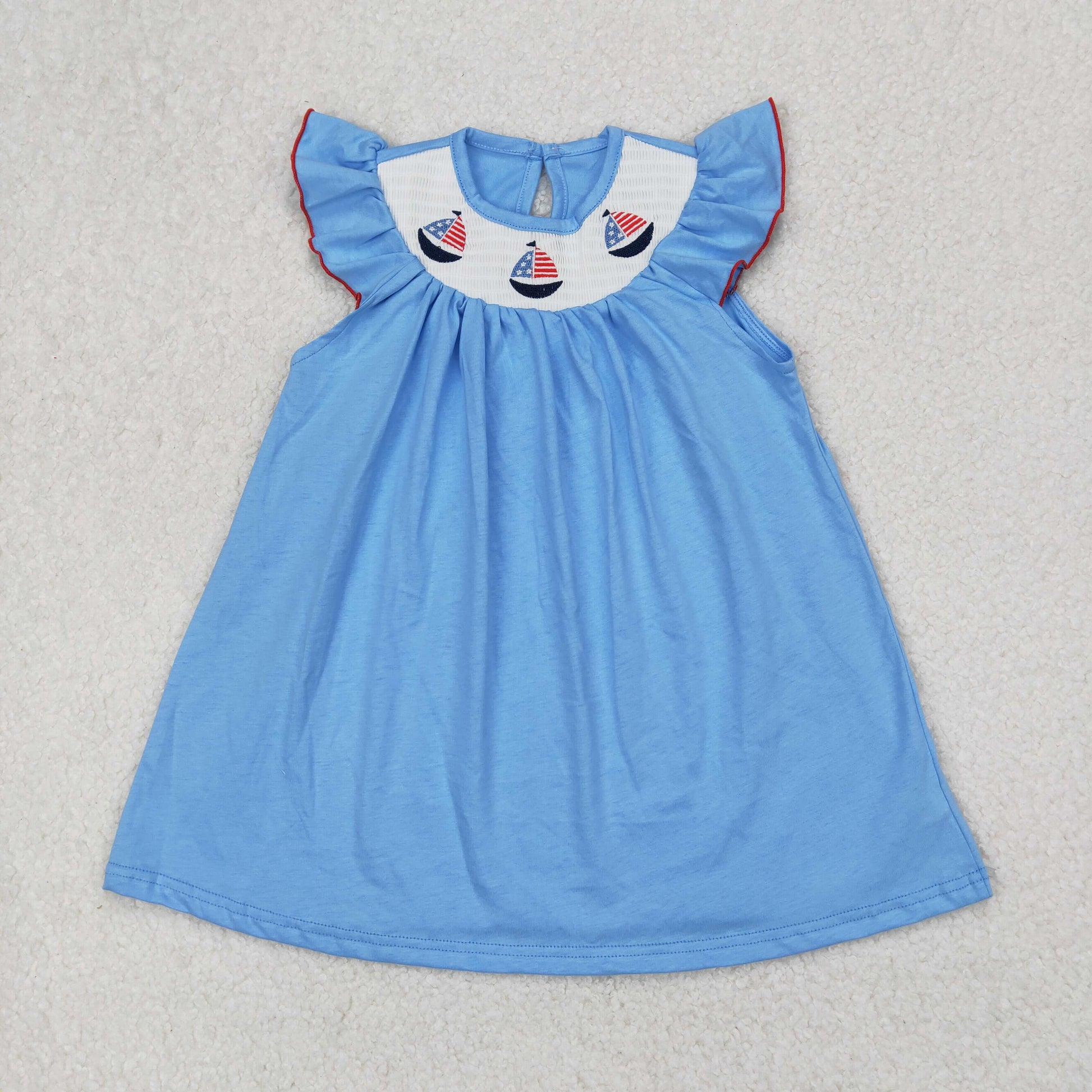 GSD1818 Embroidered Baby Clothes Flag Sailboat Sky Blue Flying Sleeve Dress Girls Boutique Outfits 202503 RTS