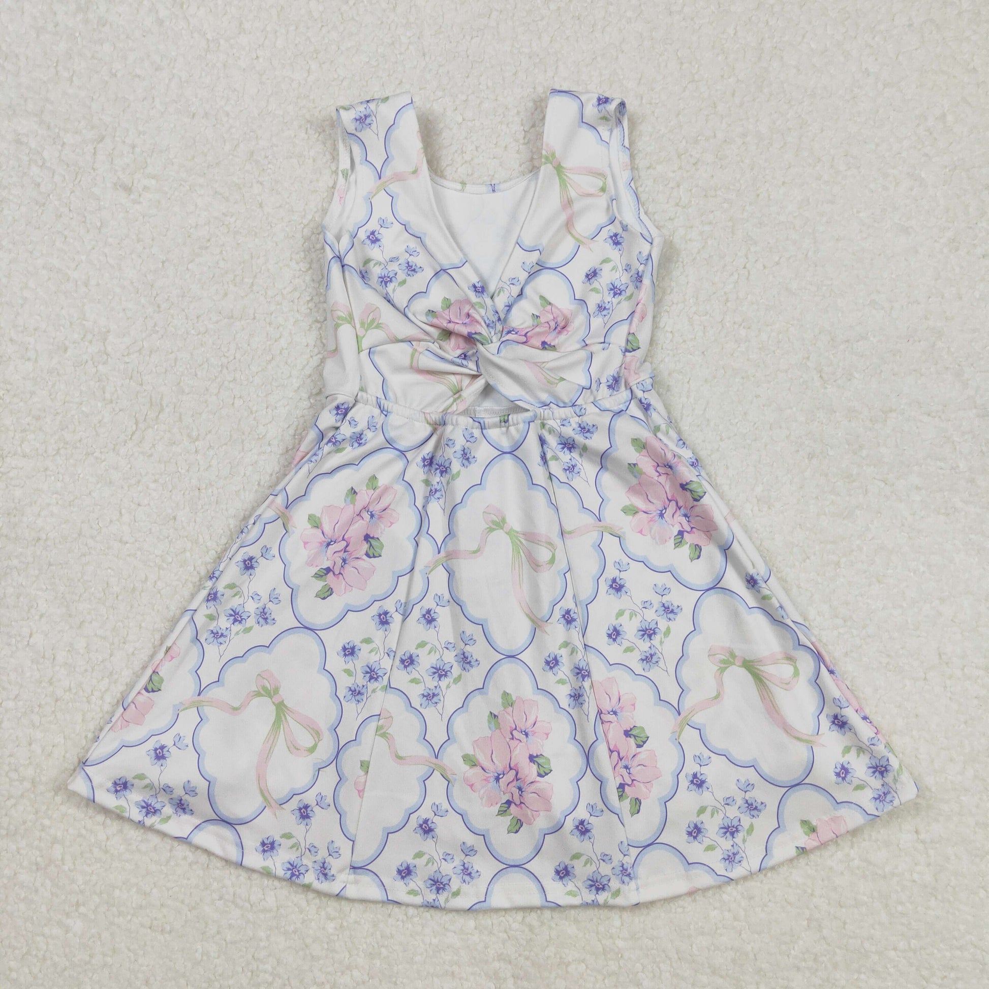 GSD1864 Yoga outfit Purple Pink Flower Bow sleeveless Dress shorts Girls Summer clothes 202502 RTS