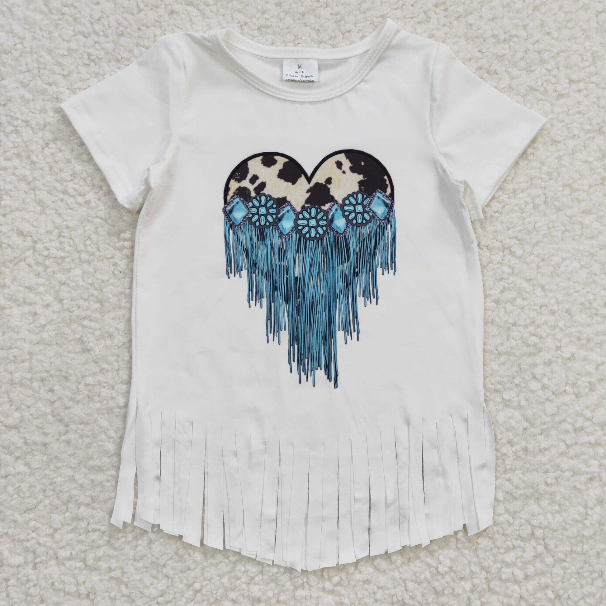 GSPO0463 2pcs GT0137 Valentine Love Leopard Blue Tassel Top+ P0008 Blue Denim Girls Short Sleeve Bell Bottom Pants Outfits