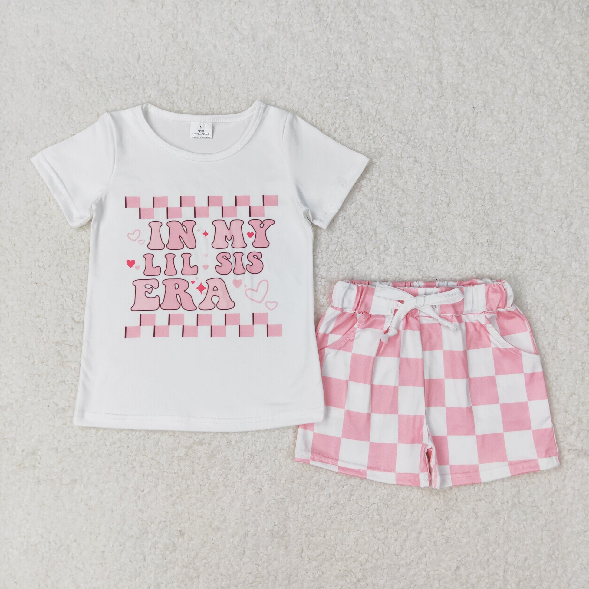 GSSO1074 in my lil sis era letter pink and white checked short-sleeved shorts suit kids clothing sets girls