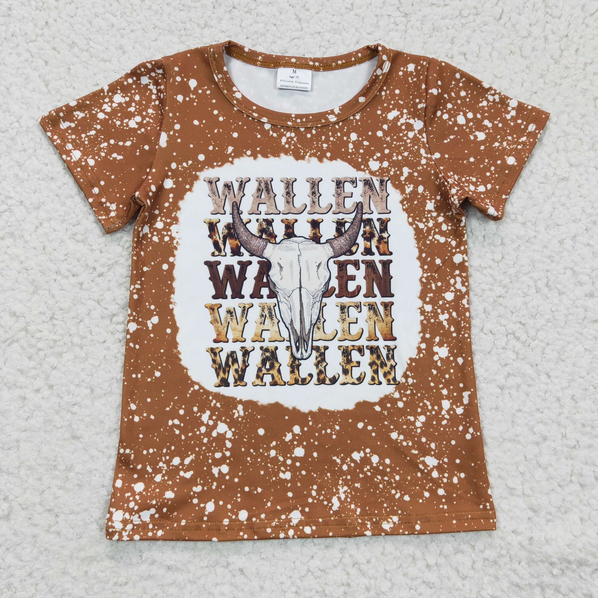 GT0115 Brown Bleach Wallen Highland Cow Girls Short Sleeve Top T-shirts