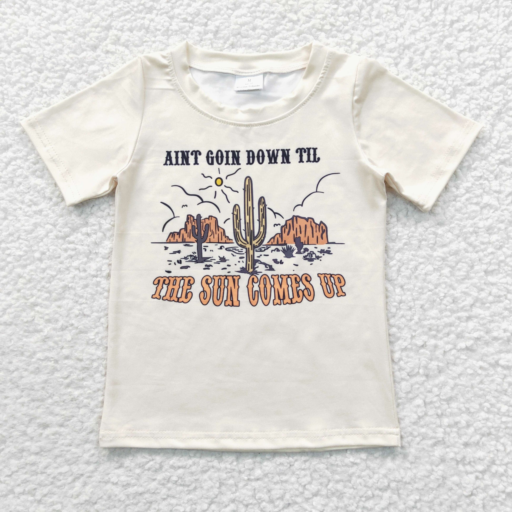 GT0160 The Sun Comes Up Cactus Western Girls Short Sleeve Top T-shirts